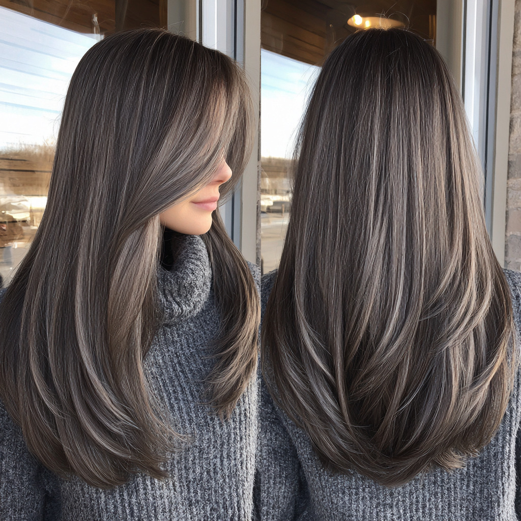 Cool ash tones give brown hair a modern, smoky twist. The soft contrast adds sophistication and shine while staying low maintenance. It’s a great option if you prefer a muted, elegant color palette. This style looks especially stunning under natural sunlight.