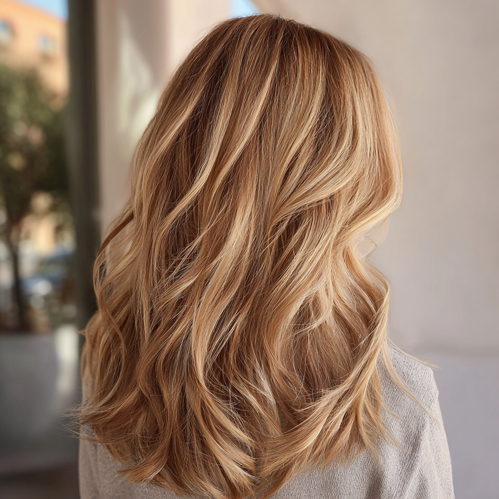 This glowing mix of gold and caramel instantly lights up your look. The warm tones add dimension and softness without looking too bright. It works beautifully with curls, waves, or straight styles. It’s the perfect go-to for anyone who wants that year-round summer glow.