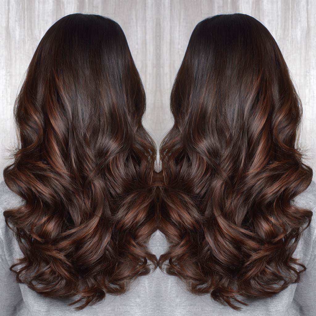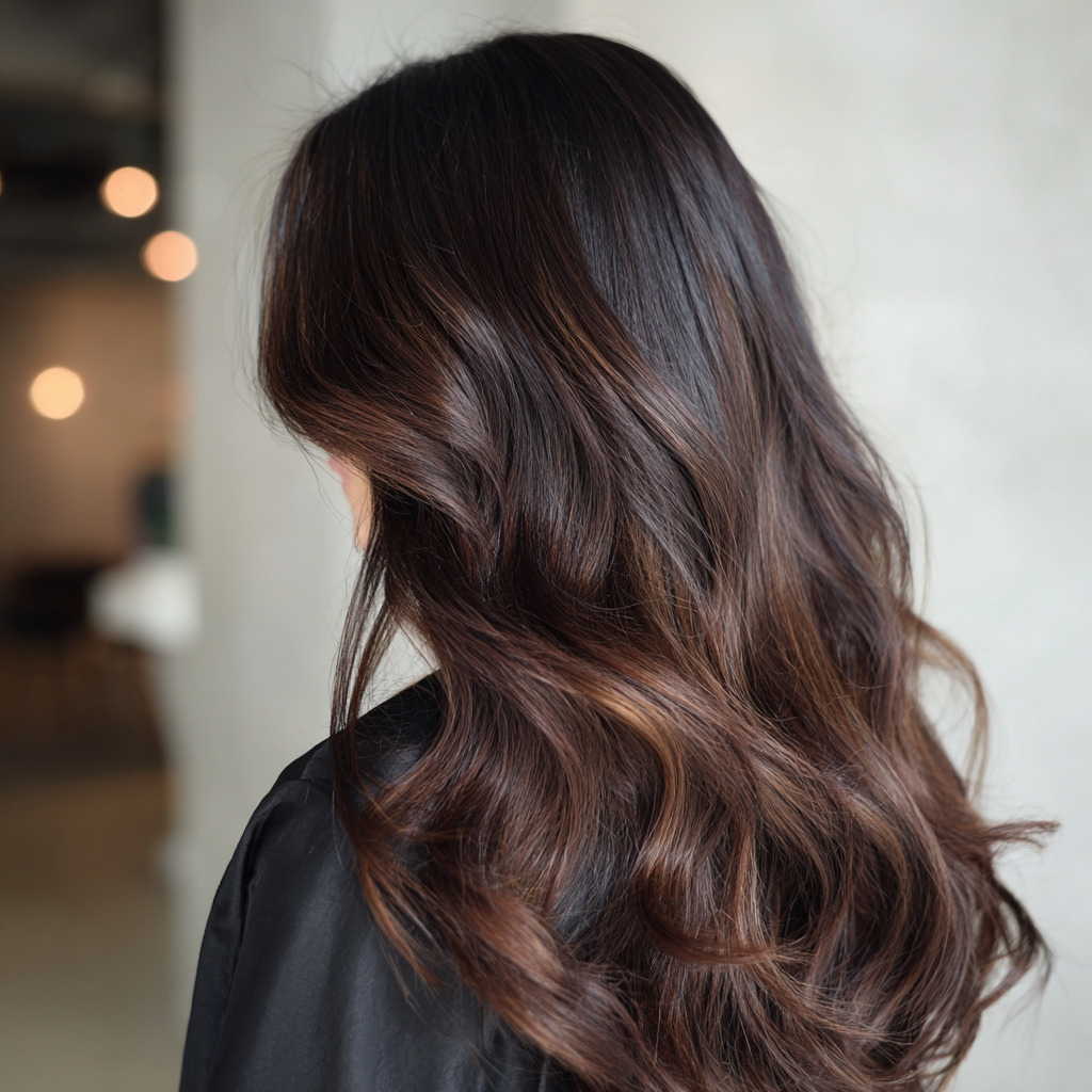 Deep espresso tones paired with subtle highlights create a smooth, rich finish. The transition is soft, giving your hair a silky and dimensional look. It’s elegant, classy, and requires very little upkeep. Perfect for dark-haired beauties who love depth and shine.