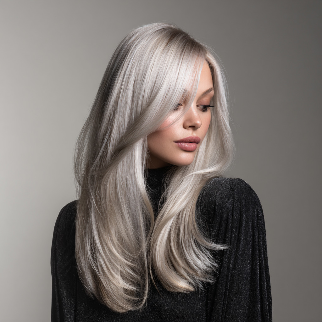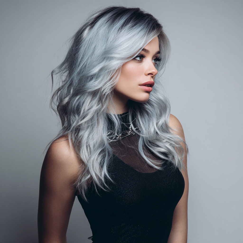 This icy, metallic look is modern and bold. The silver tones transition softly from darker roots for an ultra-chic effect. It’s stunning on sleek or wavy hair and gives off futuristic vibes. Perfect for anyone who wants a cool-toned statement style.