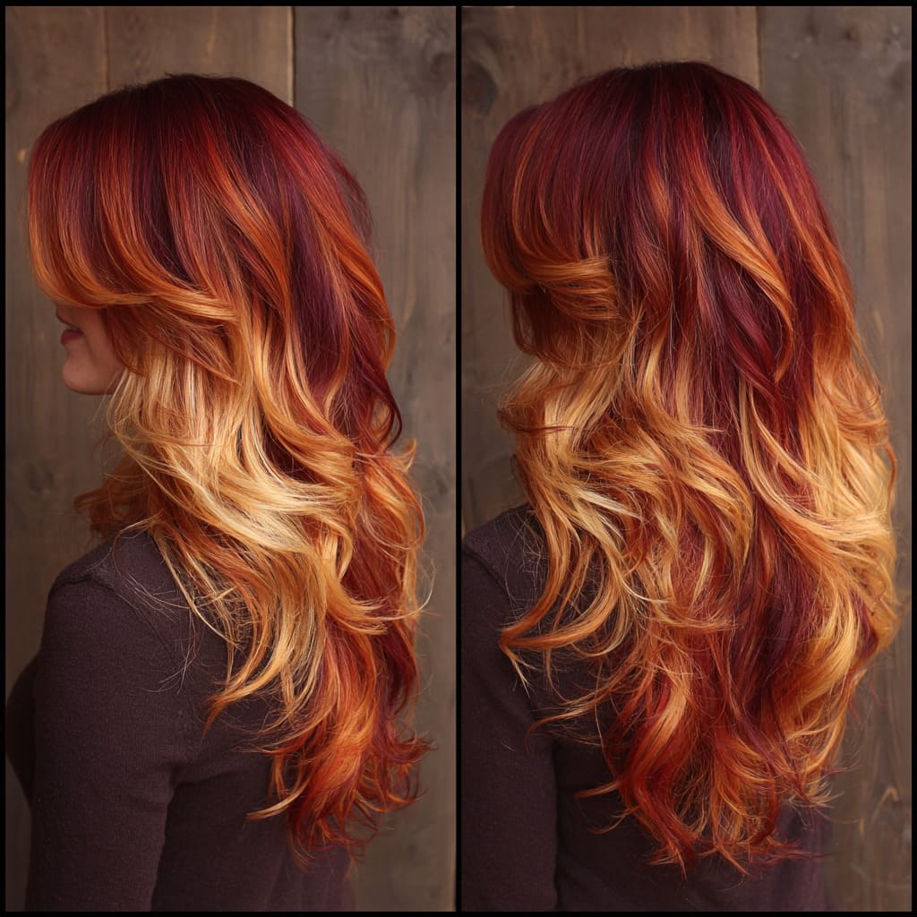 Blend red and gold tones for a warm, festive ombre. It glows in both daylight and candlelight. A daring but glamorous choice for Christmas season.