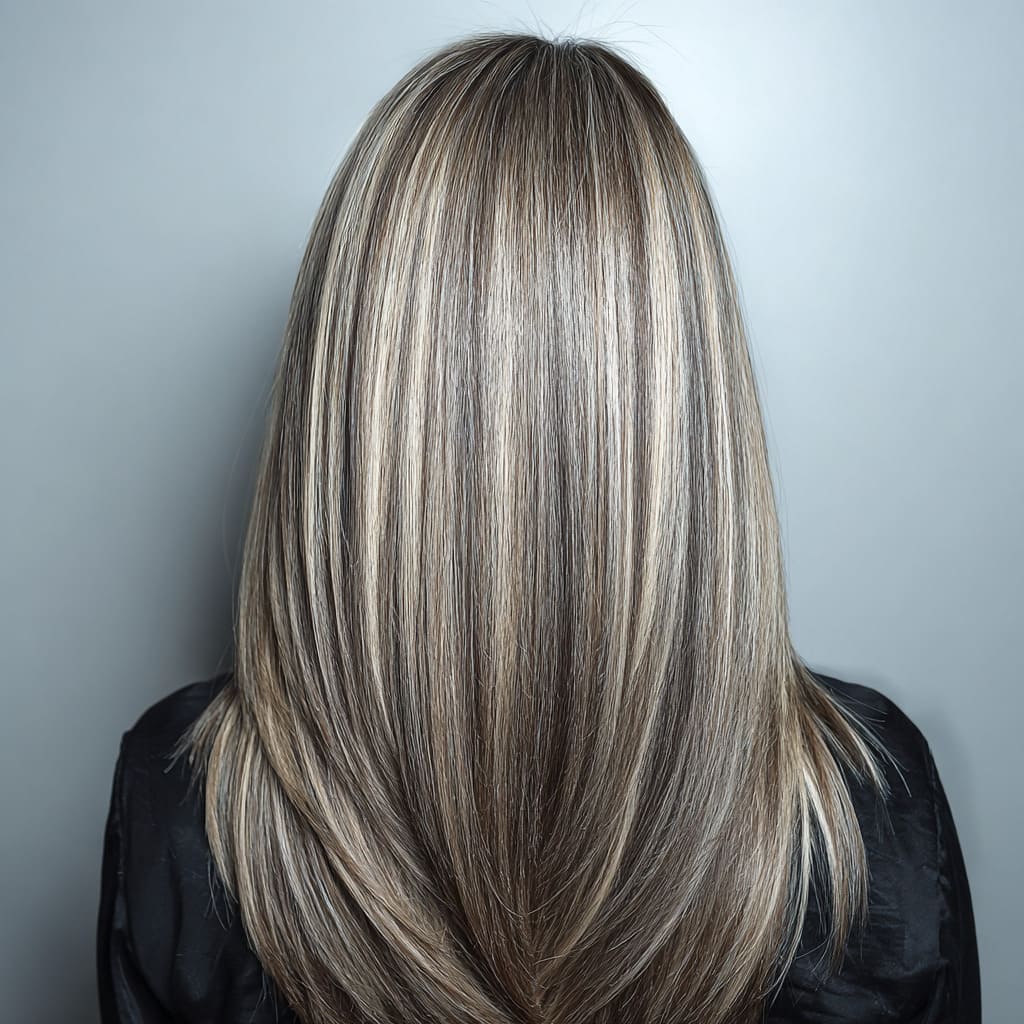 Cool-toned ash blonde chunky highlights feel sleek and sophisticated. They blend beautifully into darker bases for a softer contrast. This style looks especially chic in straight, glossy hair. It’s understated yet fashion-forward.