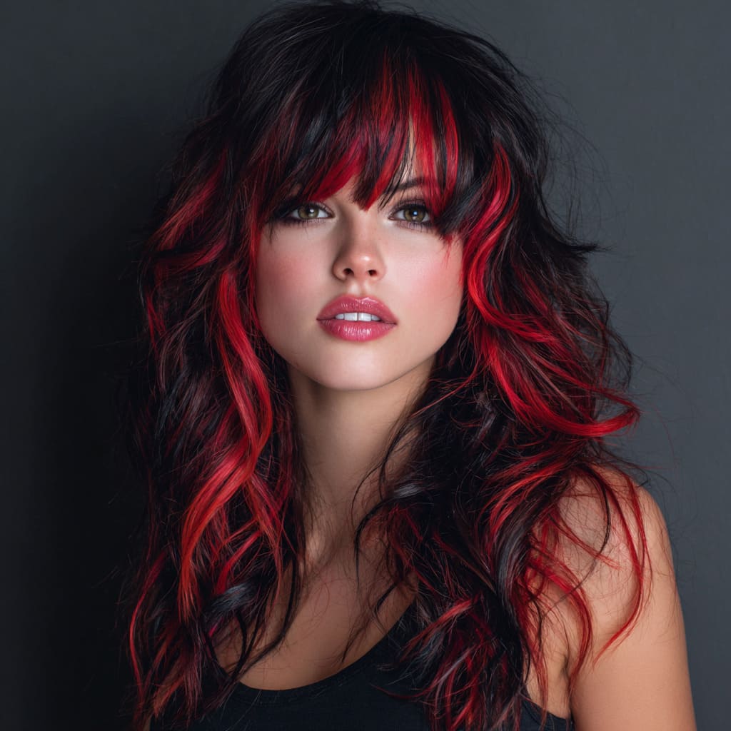 Bright red highlights bring fiery energy to any hairstyle. Against dark or brown hair, they create a striking contrast. It’s daring, fun, and full of personality. Perfect for anyone looking to turn heads.