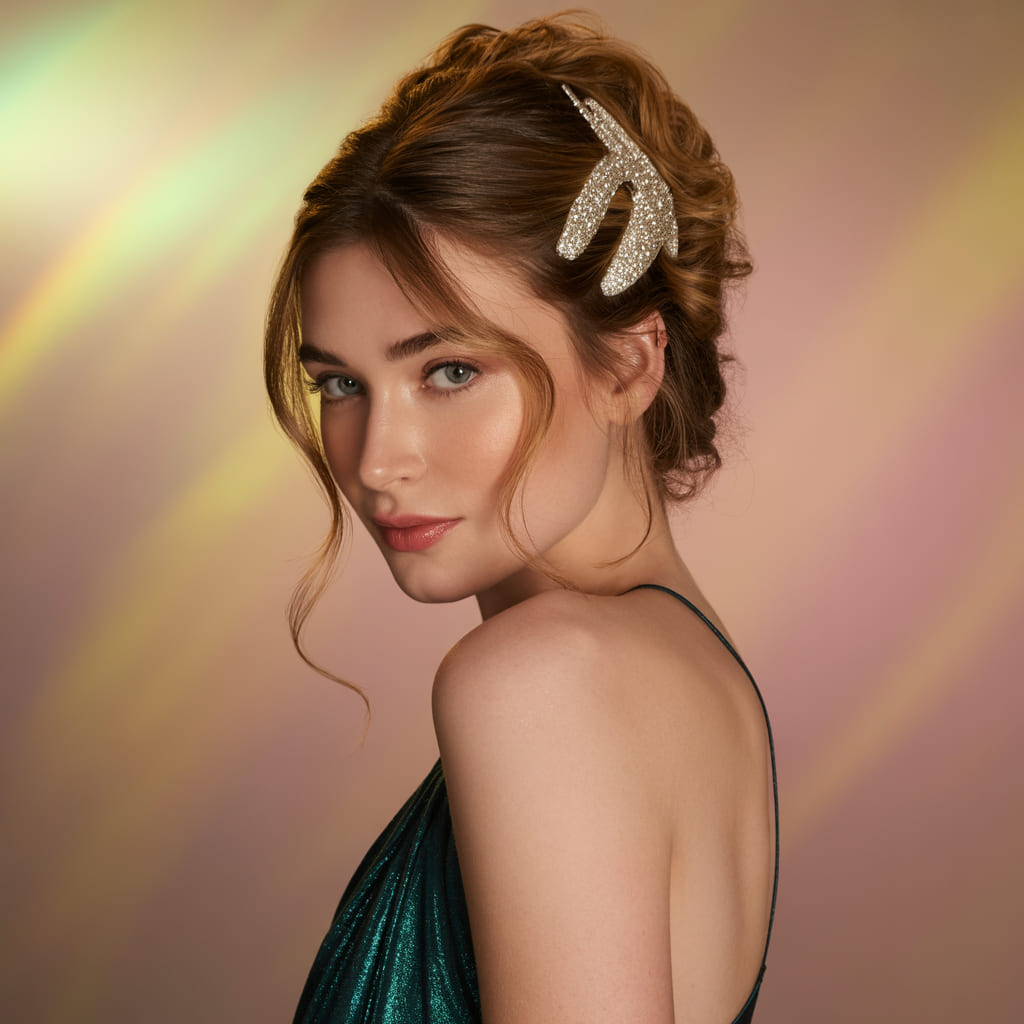 Let a few tendrils frame your face for softness. Choose a sparkly or metallic clip to match your outfit. It’s chic, trendy, and oh-so-easy.