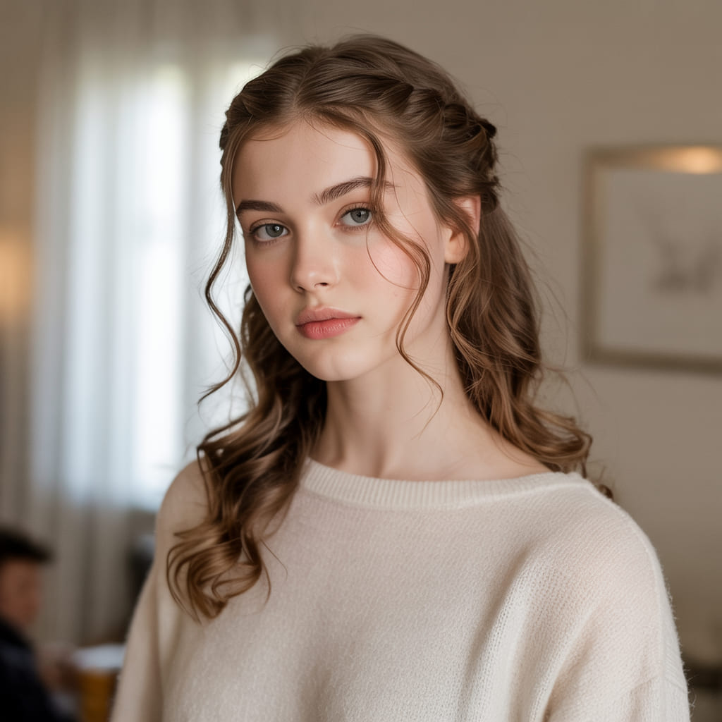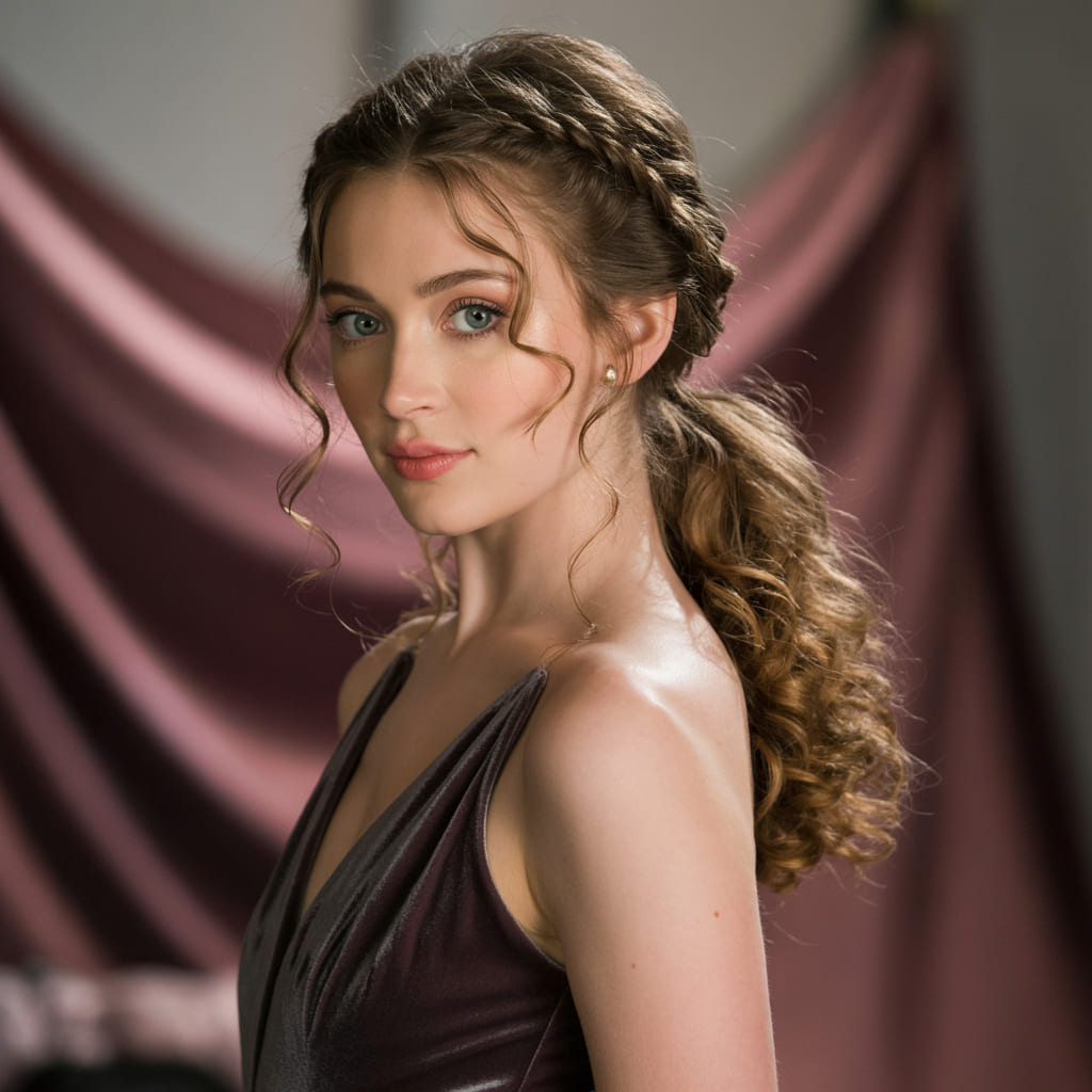 It’s structured at the top but still flowy at the ends. Add curls to the ponytail for extra volume and bounce. It’s a balanced hairstyle that feels detailed without being complicated.