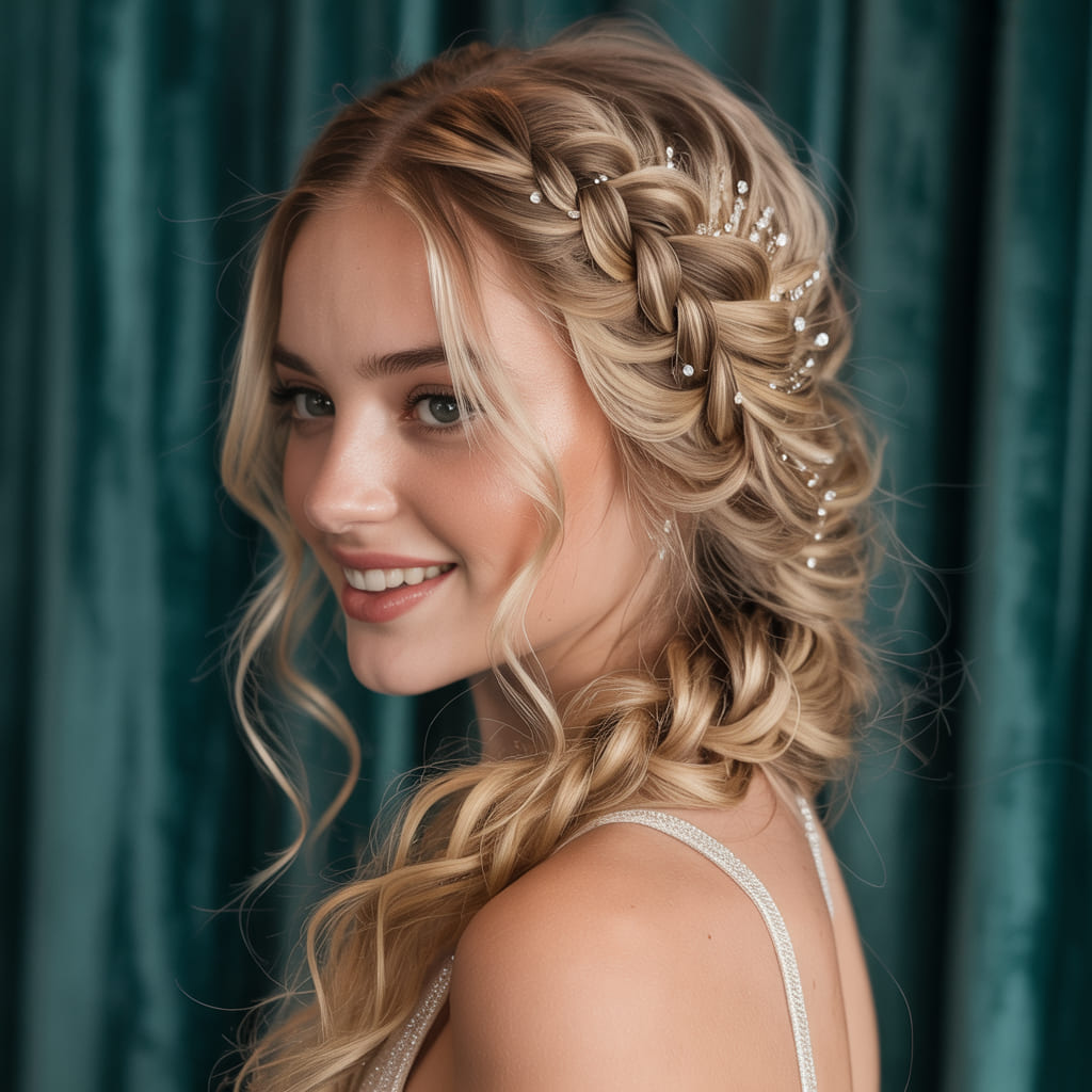 They’re secure enough for dancing, yet glamorous with a bit of shine spray. Add tiny rhinestones between the braids for extra sparkle. This look is bold, fun, and totally on-trend.