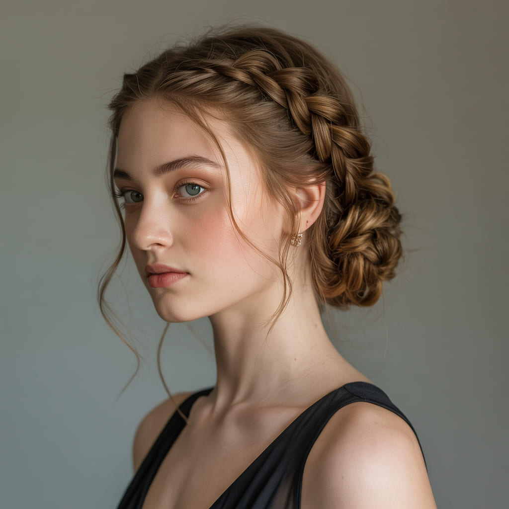 The braid adds texture and detail while the bun keeps it elegant. This hairstyle looks complicated but is surprisingly quick to create. It’s classy and perfect for dressier gowns.