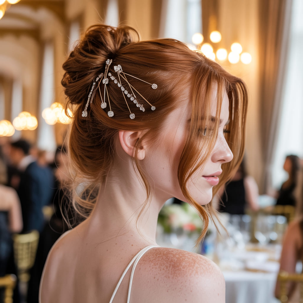 Add sparkly pins or a jeweled hairpiece, and suddenly your bun feels red-carpet ready. It’s comfortable for dancing all night and photographs beautifully.