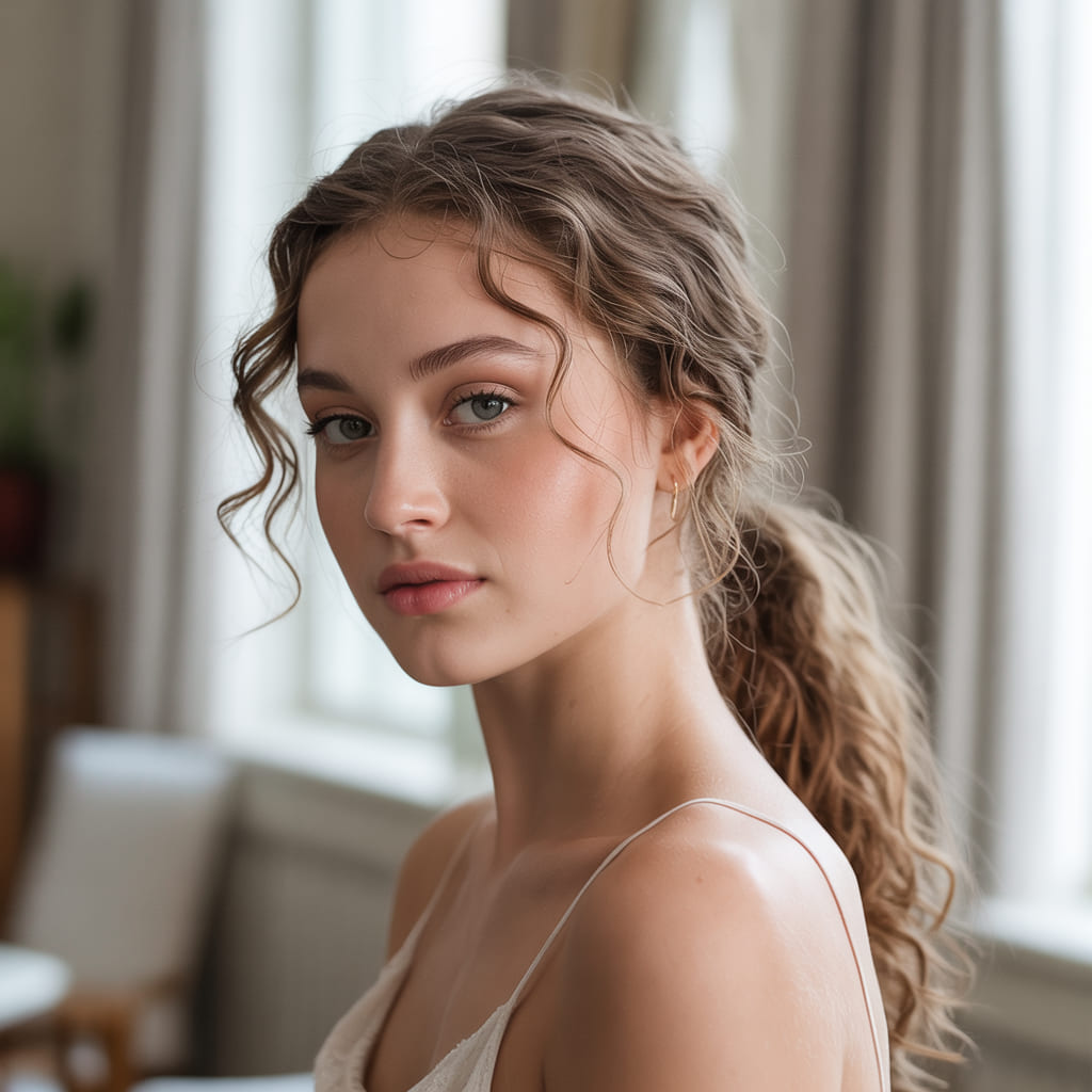 For a relaxed but chic vibe, go for a tousled ponytail. Curl your hair first, then tie it loosely for a soft, romantic look.