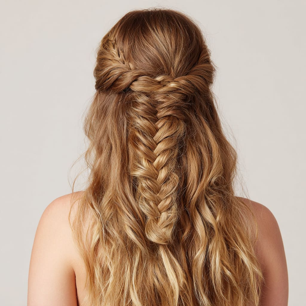 10. Fishtail Braid with Half-Up Section