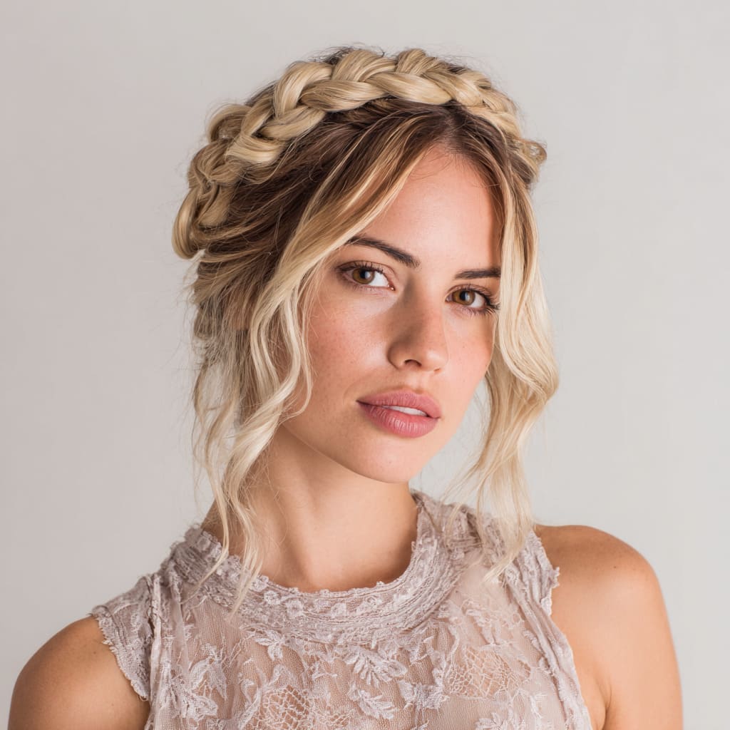 A halo braid is a unique and creative hairstyle that wraps around your head, giving you an elegant, almost ethereal look. Pair it with loose waves for that perfect balance of texture and softness. This style accentuates your features while giving off that boho-chic vibe. Ideal for formal events, date nights, or whenever you want to feel like royalty.