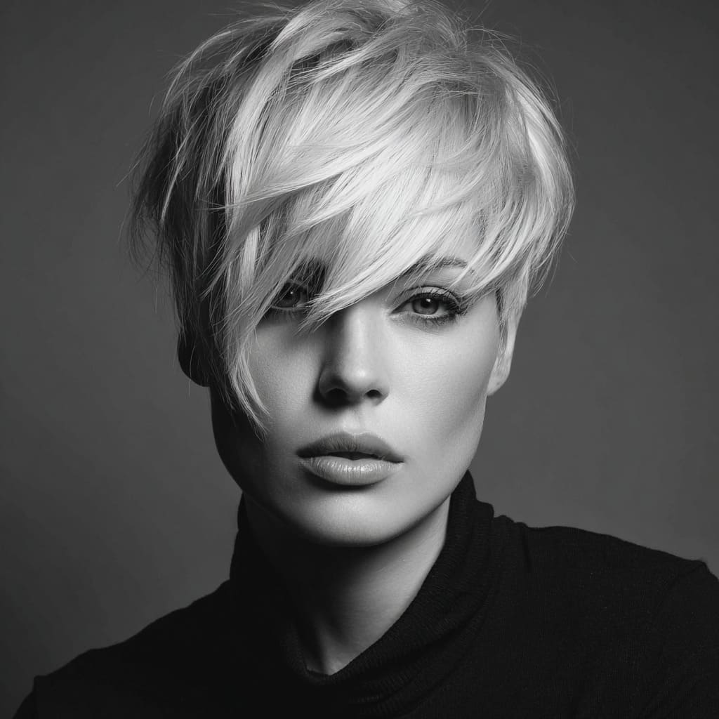 5. Bold Pixie Cut with Angled Fringe