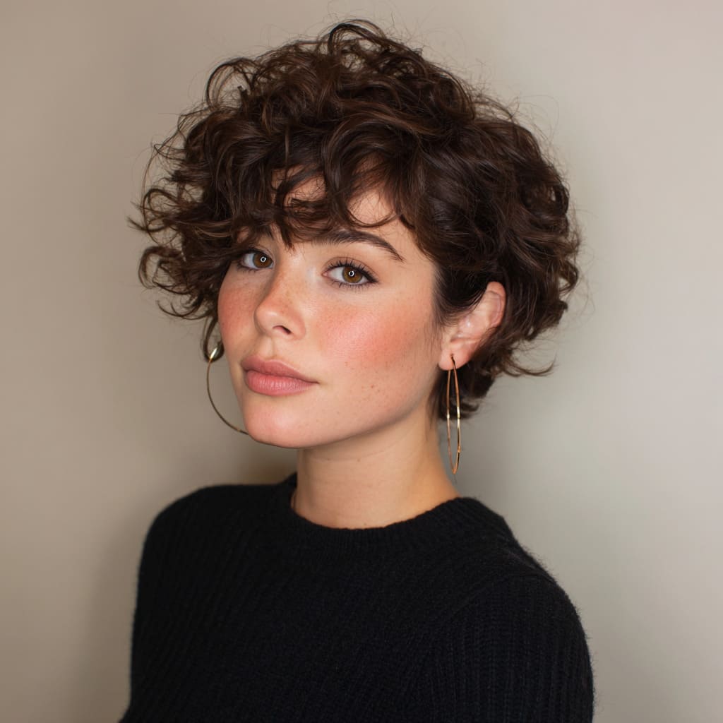A curly bob with a deep side part is a playful, flirty hairstyle that makes the most of your natural texture. The curly volume adds bounce and body, while the side part enhances the shape of your face. This look is modern and fresh, making it a great option for both casual and semi-formal occasions.