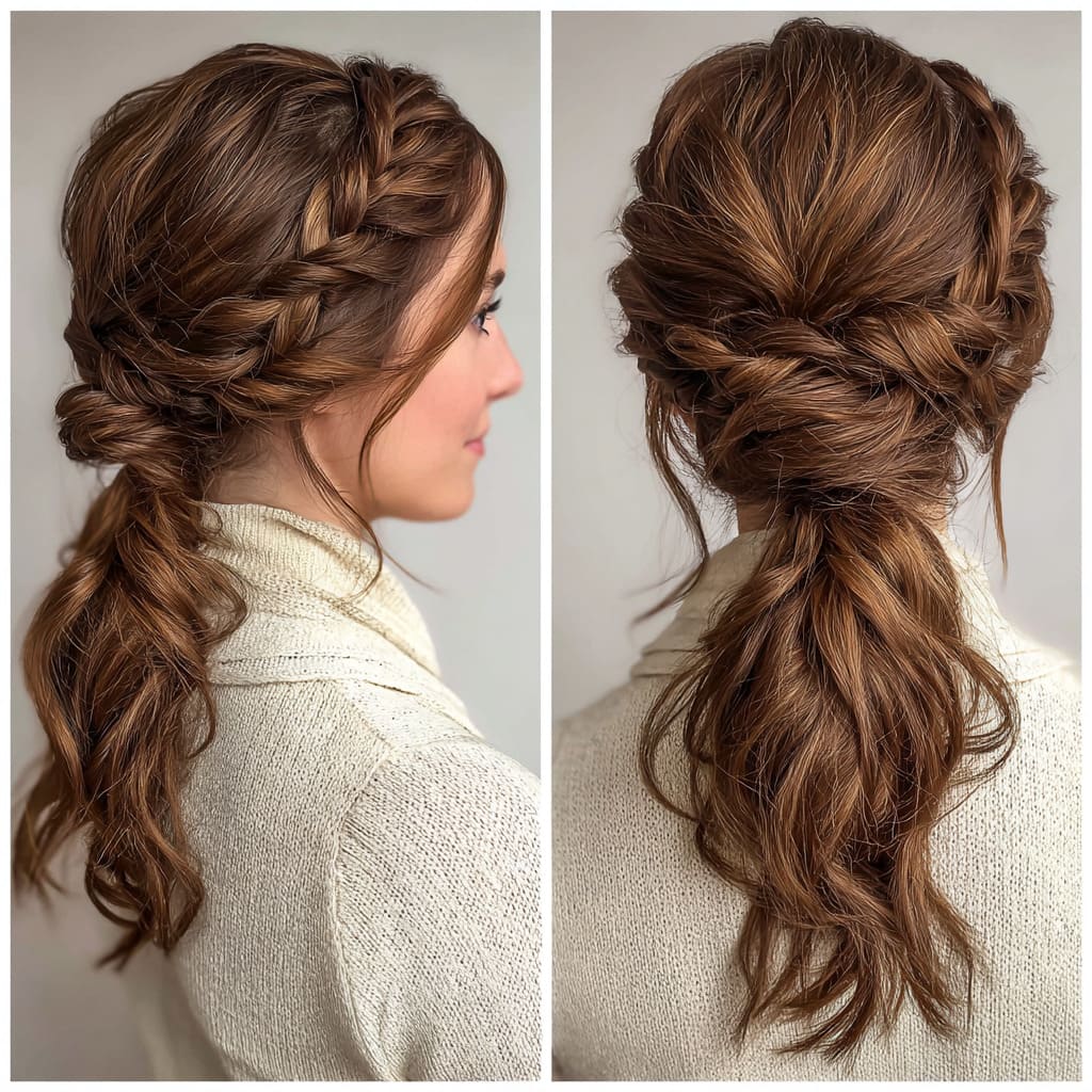 13. Twisted Halo Braid with Low Ponytail