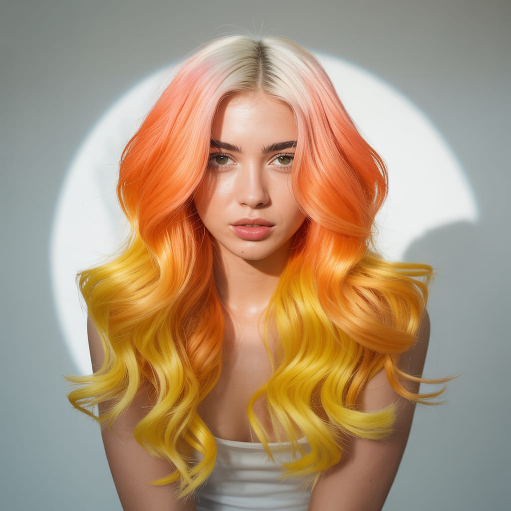 Sweet and seasonal, candy corn ombre is a fun way to celebrate Halloween. Spray your hair in orange, yellow, and white sections to mimic the candy’s colors. It’s bright, playful, and instantly recognizable.