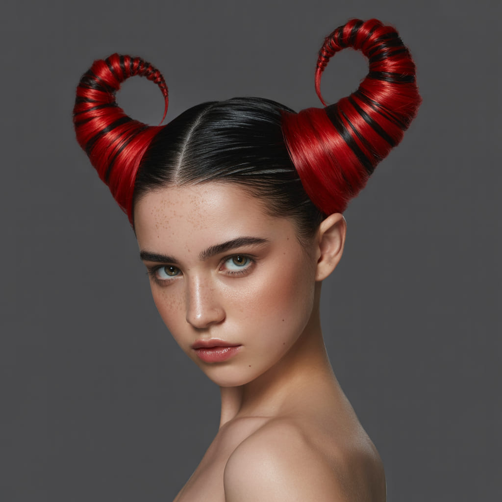 For a fiery look, try devil horn braids. Twist your hair into two cone-shaped buns on top of your head and spray them red. It creates the illusion of horns, giving you instant devil energy.