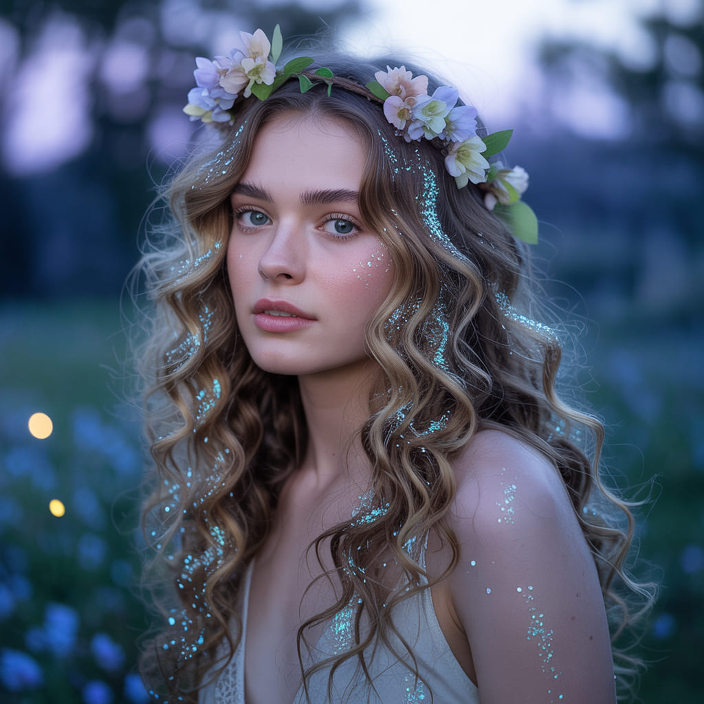 Bring some magic to Halloween night with fairy sparkle curls. Soft waves or curls sprinkled with glitter instantly look whimsical and enchanting. Add a flower crown or delicate headband to complete the dreamy vibe.
