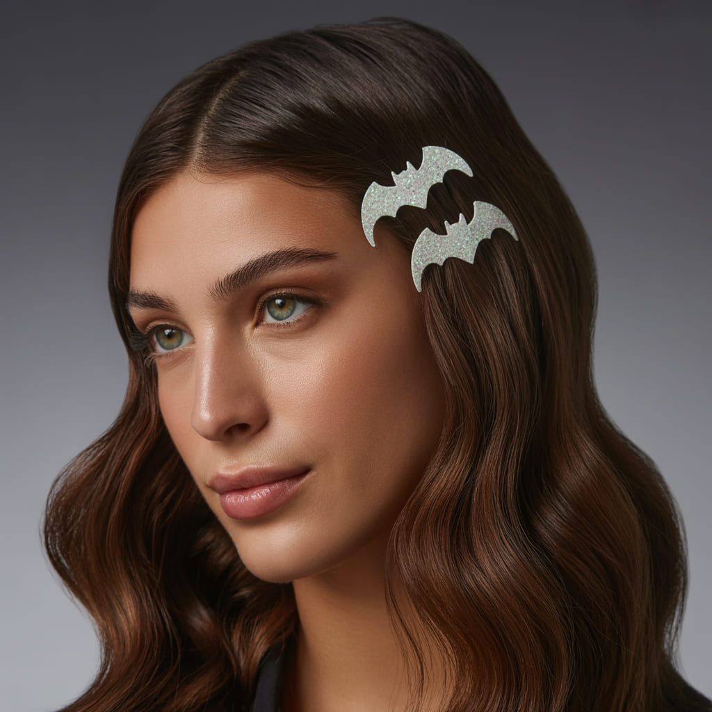 Sometimes, it’s all about the accessories. Add bat-shaped glitter clips to sleek waves or loose curls for an instant festive upgrade.
