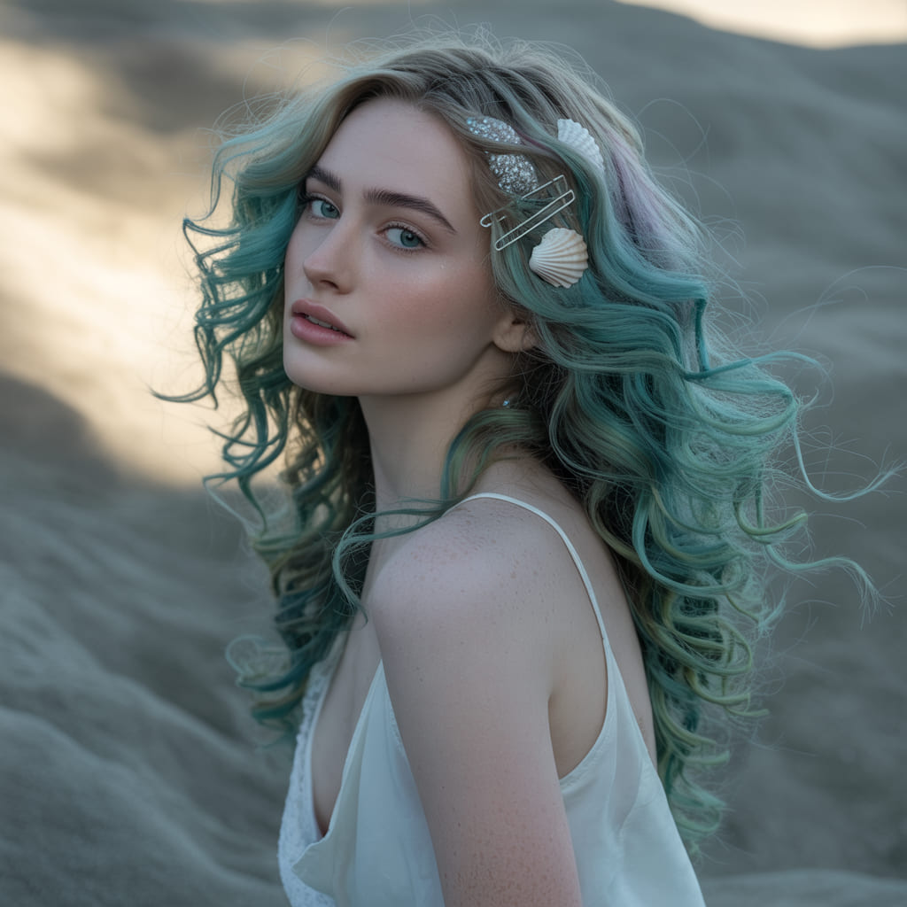 Add seashell clips or glitter to mimic ocean shimmer. This look works beautifully with sparkly costumes and bold makeup. It’s magical, glamorous, and totally Instagram-worthy.