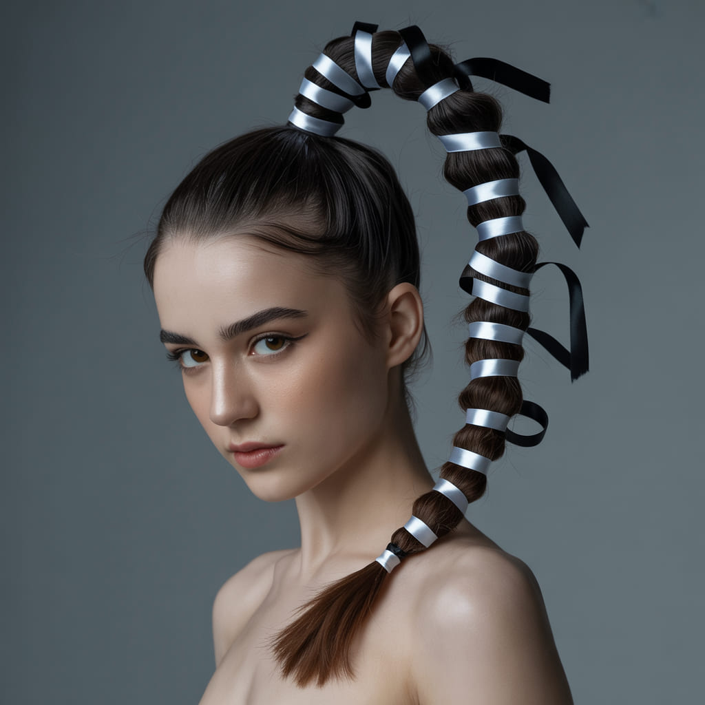 Sleek and polished, the skeleton ponytail is equal parts spooky and stylish. Start with a high ponytail and wrap the base with black-and-white skeleton ribbons or clips.