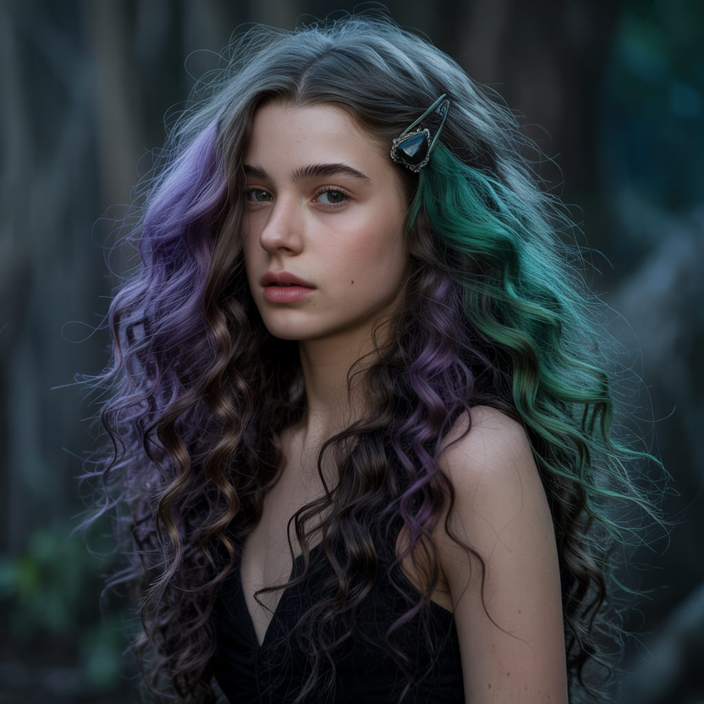 Classic and timeless, witchy waves never fail on Halloween night. Loose, flowing curls with a hint of dark shine instantly give you that mysterious energy. Add streaks of green or purple spray for a dramatic twist that looks amazing under dim lights.