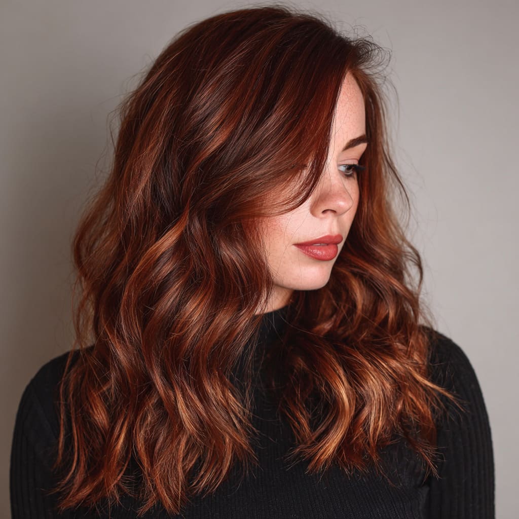 For those craving something warm but not too bright, chestnut-copper highlights strike the perfect balance. The reddish tones add a subtle sparkle to darker hair without feeling overwhelming. This color combo enhances texture and gives depth to your strands. It’s ideal for brunettes who love a natural, glowing finish.