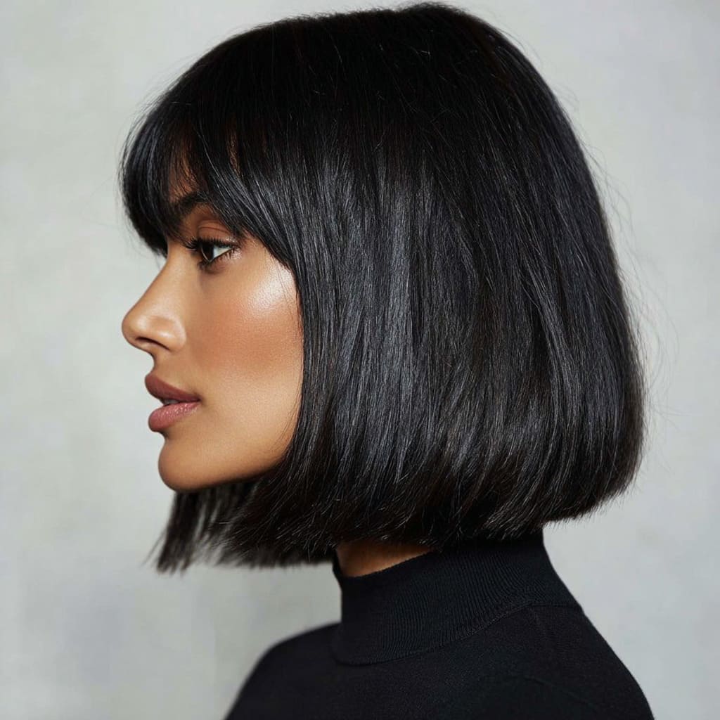 This polished cut is sleek, structured, and stunningly simple. The ends are curled under slightly to create a soft, elegant frame for your face. It’s ideal for women who love clean lines but still want a bit of volume. Pair it with a glossy finish for that timeless “put-together” glow.