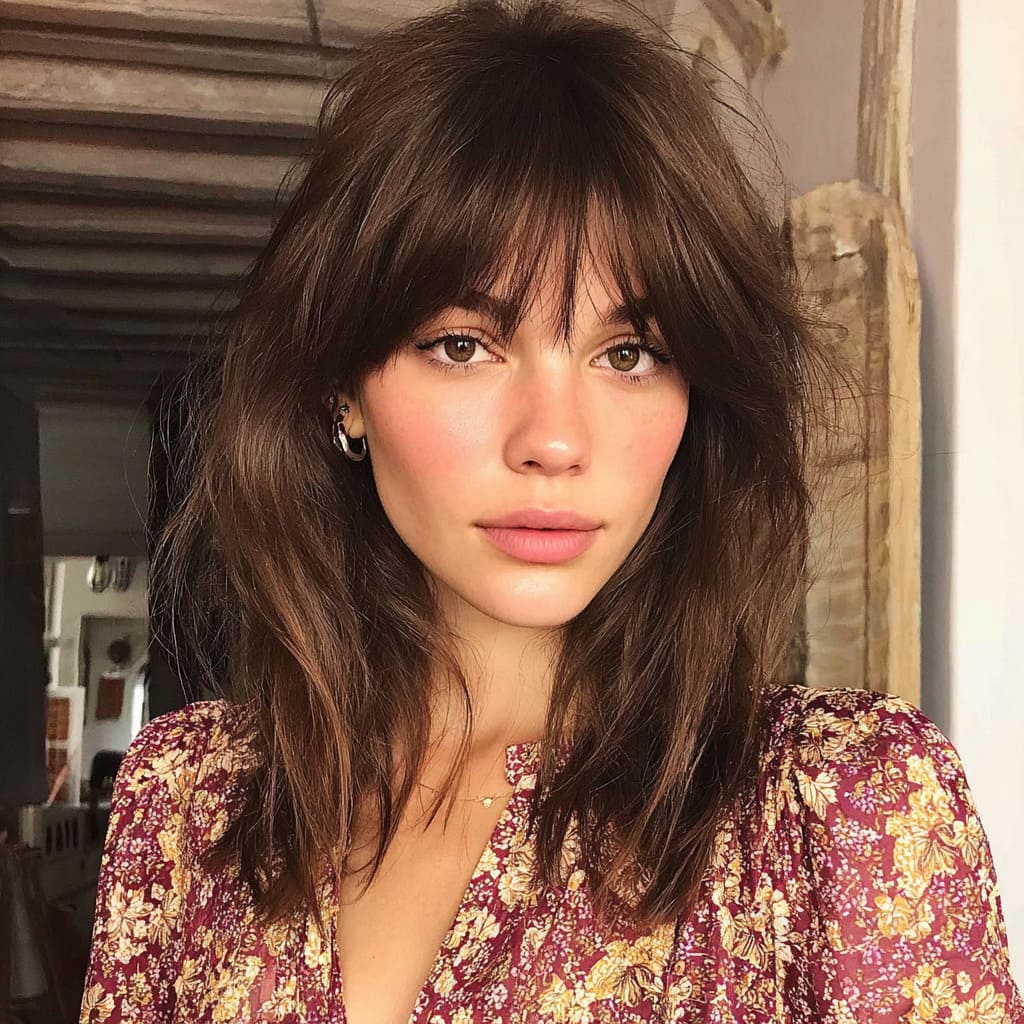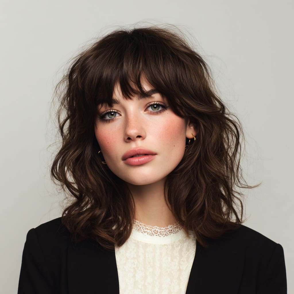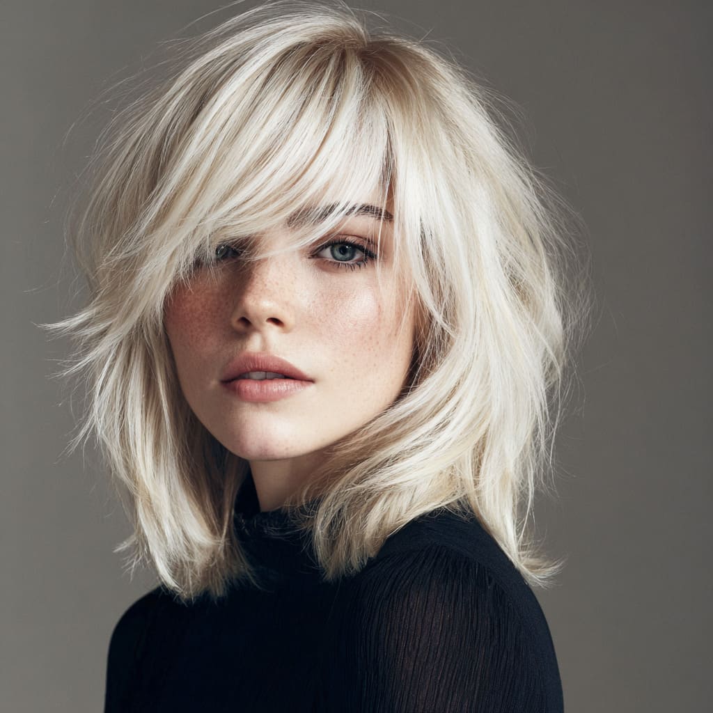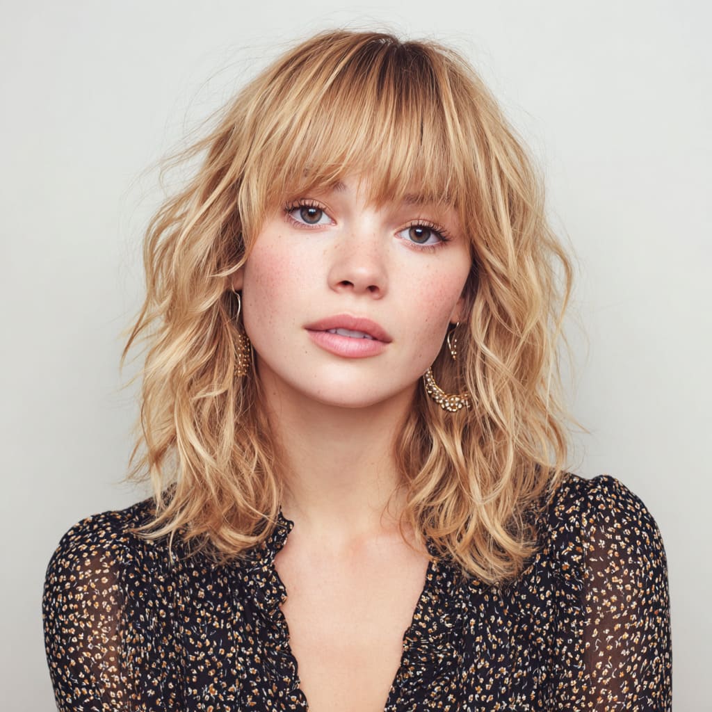 Side bangs instantly add character to medium-length hair. They bring softness to your features and make your haircut look more dynamic. The length gives you endless styling options — straight, wavy, or half-up. It’s flirty, fun, and ideal for everyday wear.