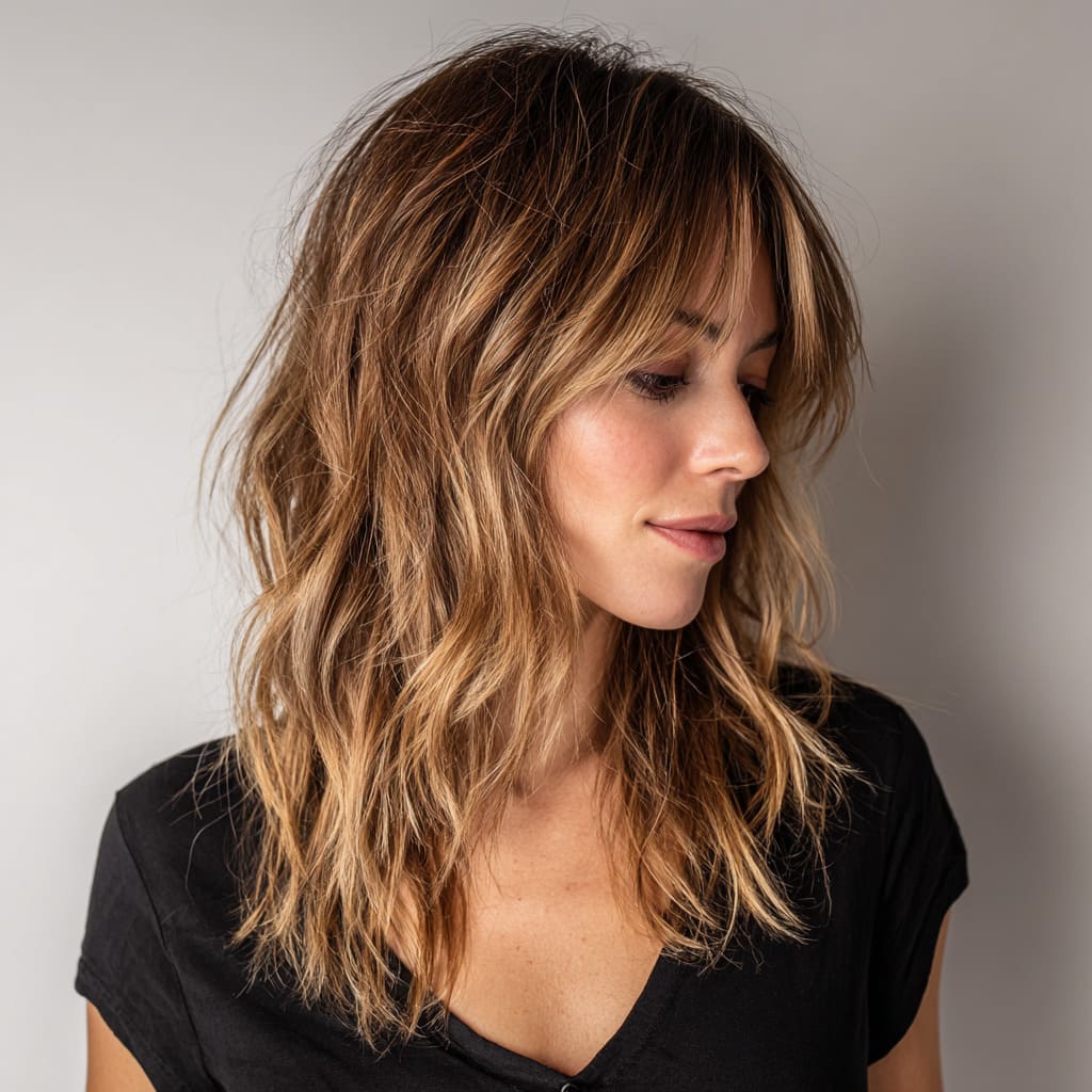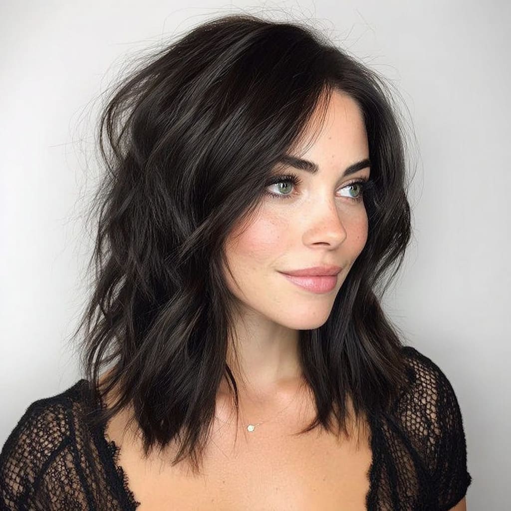 Choppy layers bring a playful, edgy touch to medium hair. They’re great for adding volume and shape without committing to a big change. This cut gives off effortless confidence — stylish but not overdone. It’s perfect for anyone who loves low-maintenance flair with personality.