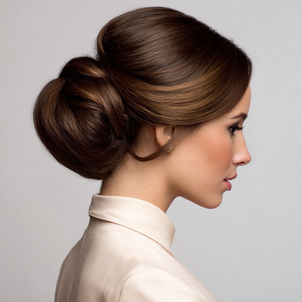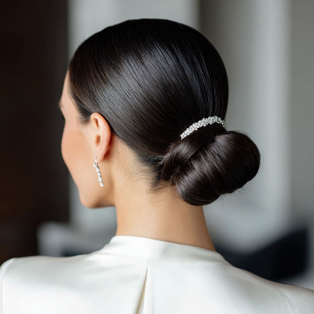 The sleek low bun exudes old-money charm with its clean lines and smooth finish. This elegant style is all about minimalism, making it perfect for classy events or a polished day at the office. Add a decorative comb or subtle hairpin for a touch of sparkle, but keep it refined.