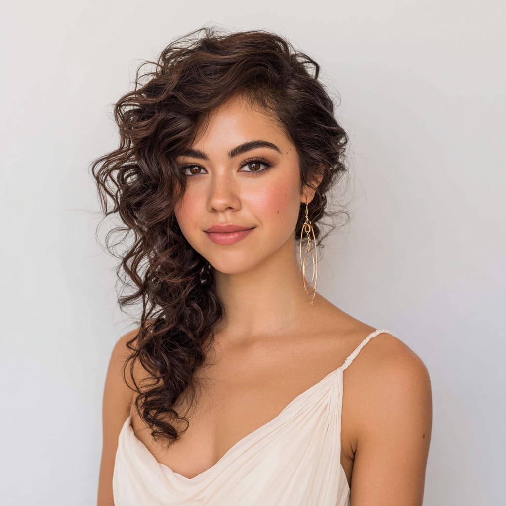 Loose curls swept to one side create a soft, romantic vibe. This look is easy to pull off and feels effortlessly elegant. It’s perfect for a date night or an event where you want to feel both casual and chic.