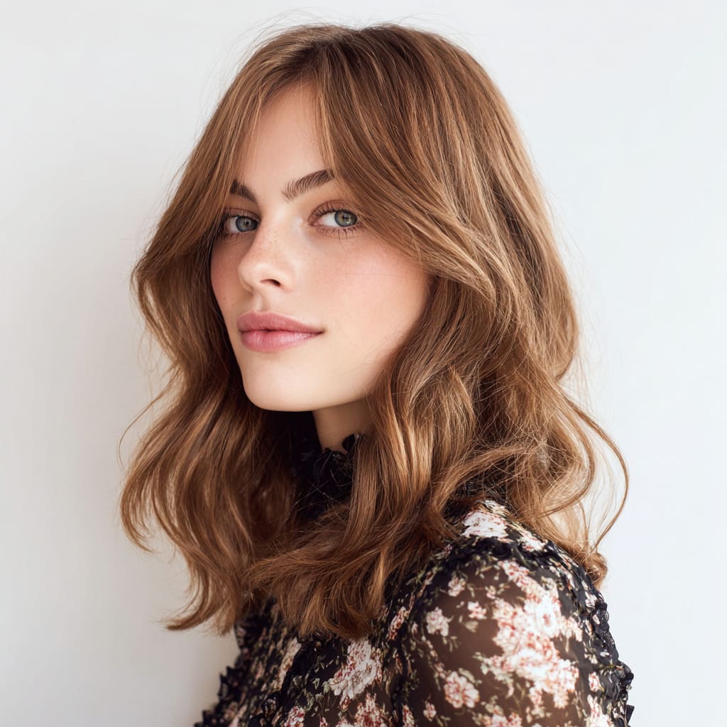 Soft, relaxed waves that end just below the shoulders are an effortless way to embody old-money glam. Use a light-hold mousse or shine serum to keep the look polished and glowing. This hairstyle has a carefree yet polished vibe.