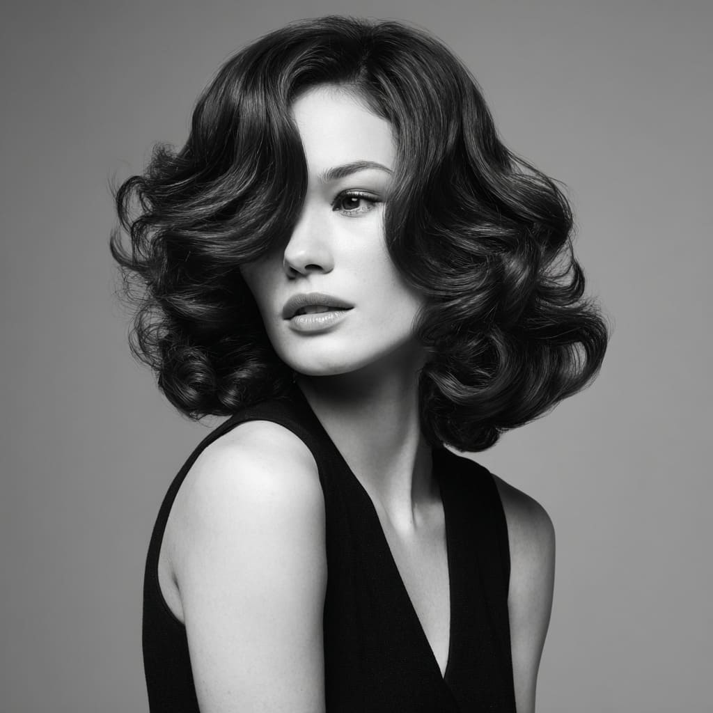 Soft, bouncy curls are a nod to vintage beauty while keeping things fresh and modern. The volume at the crown adds a regal touch, perfect for a more refined look. This hairstyle is versatile, pairing well with evening wear or a chic lunch date.