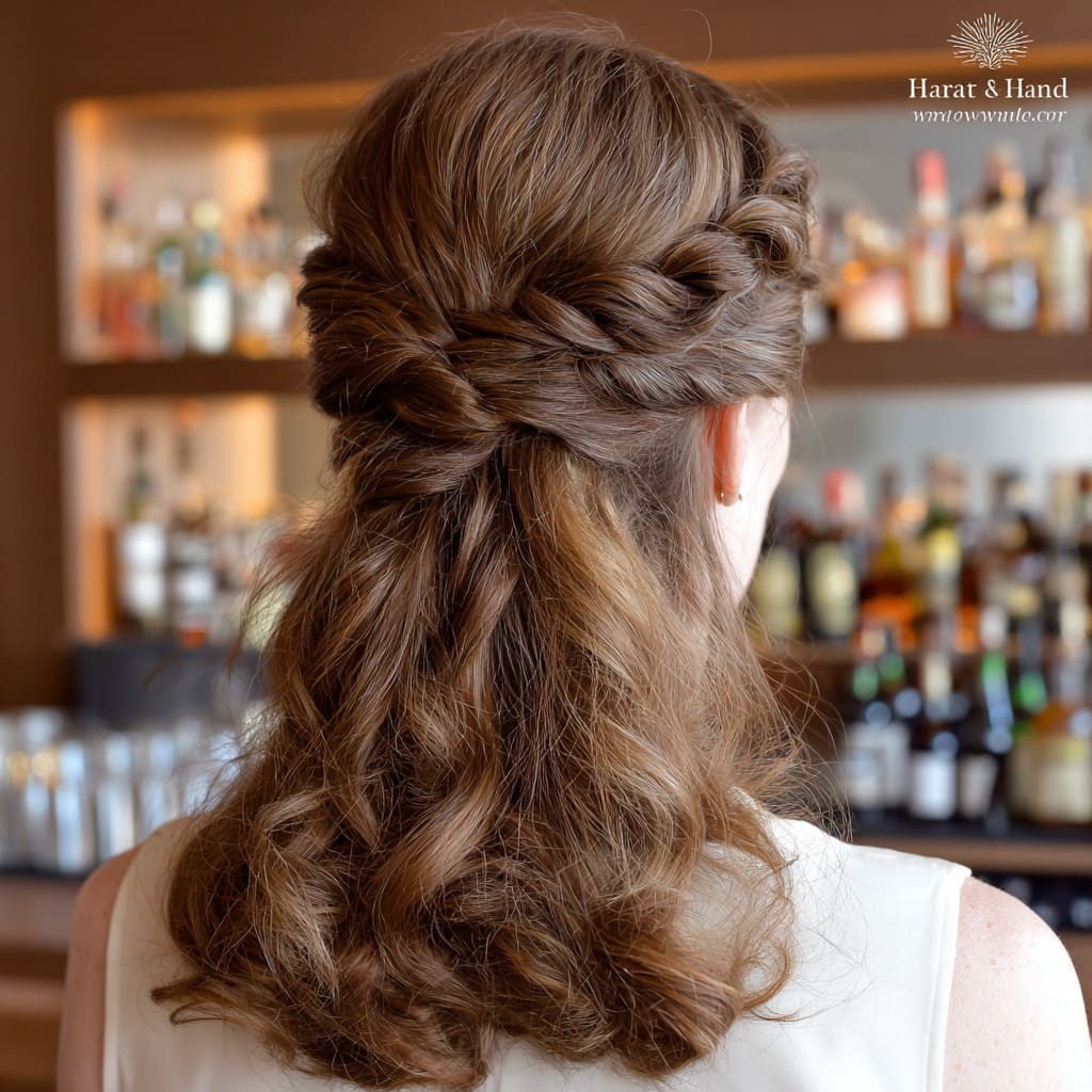For a twist on the classic half-updo, twist sections of your hair before pinning them back. The gentle twists add interest and texture to a normally simple style. Whether you’re at an afternoon tea or an evening cocktail party, this style says “classy with a touch of fun.”