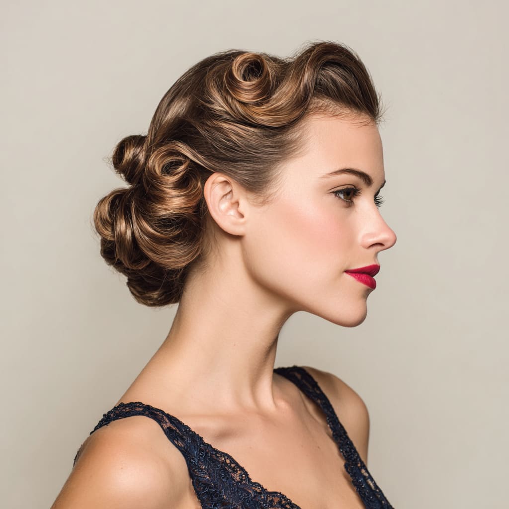 Vintage rolls are the perfect retro touch for old-money glamour. Roll sections of your hair away from your face for a polished, sophisticated look. Finish with a gentle hairspray to maintain the curl. This hairstyle is perfect for galas, theater nights, or even a Sunday family gathering.