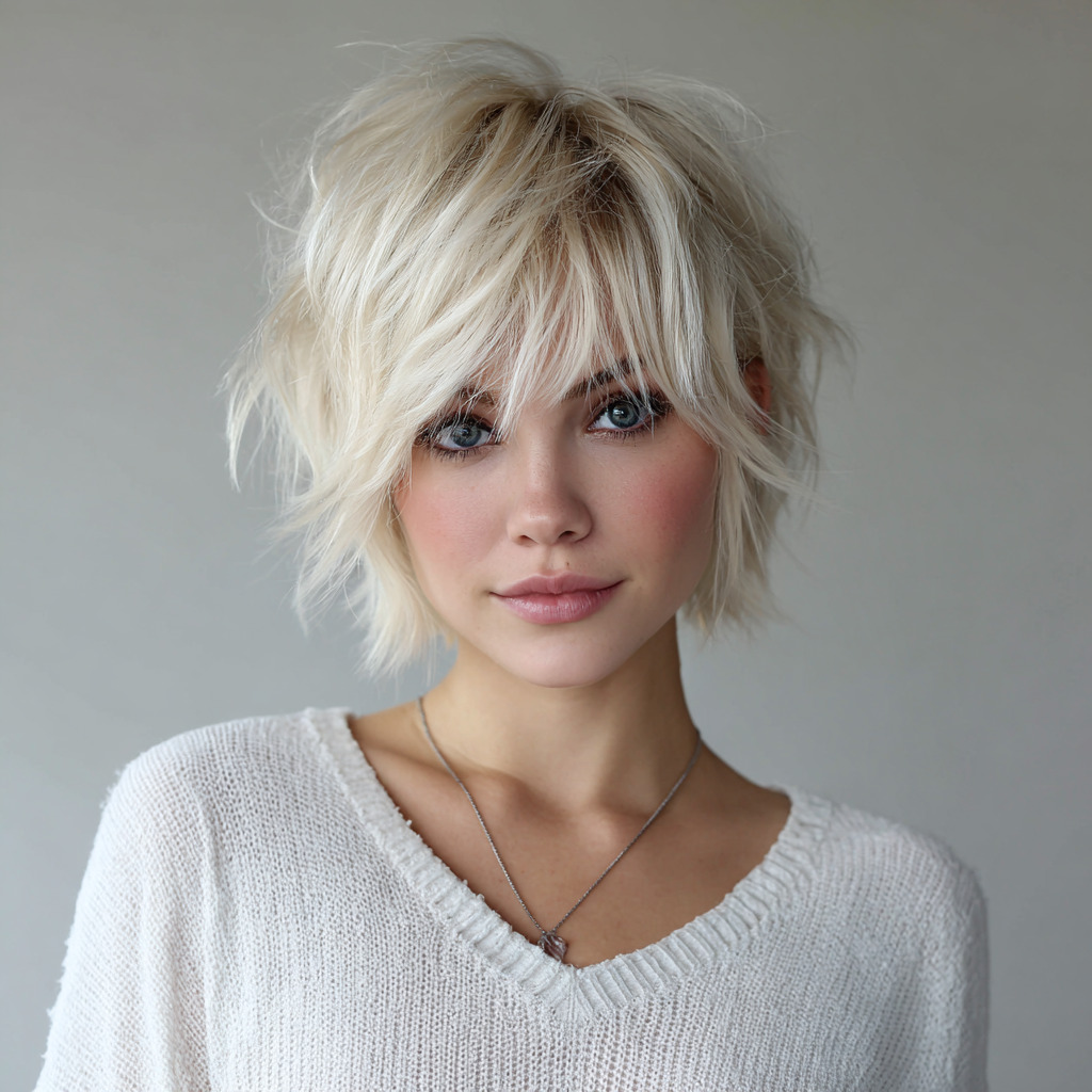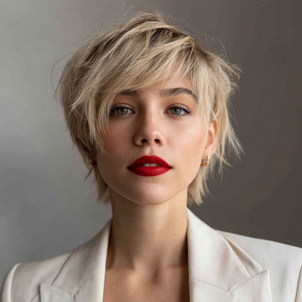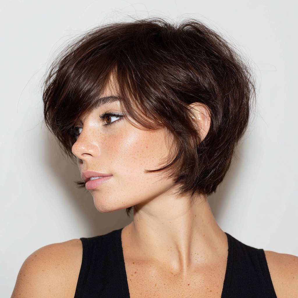 Adding bangs to a pixie bob completely changes the mood of your haircut. Blunt bangs make it edgy, while wispy ones add a dreamy vibe. The cut flatters your face and brings attention to your eyes. It’s a small detail that makes a big difference.