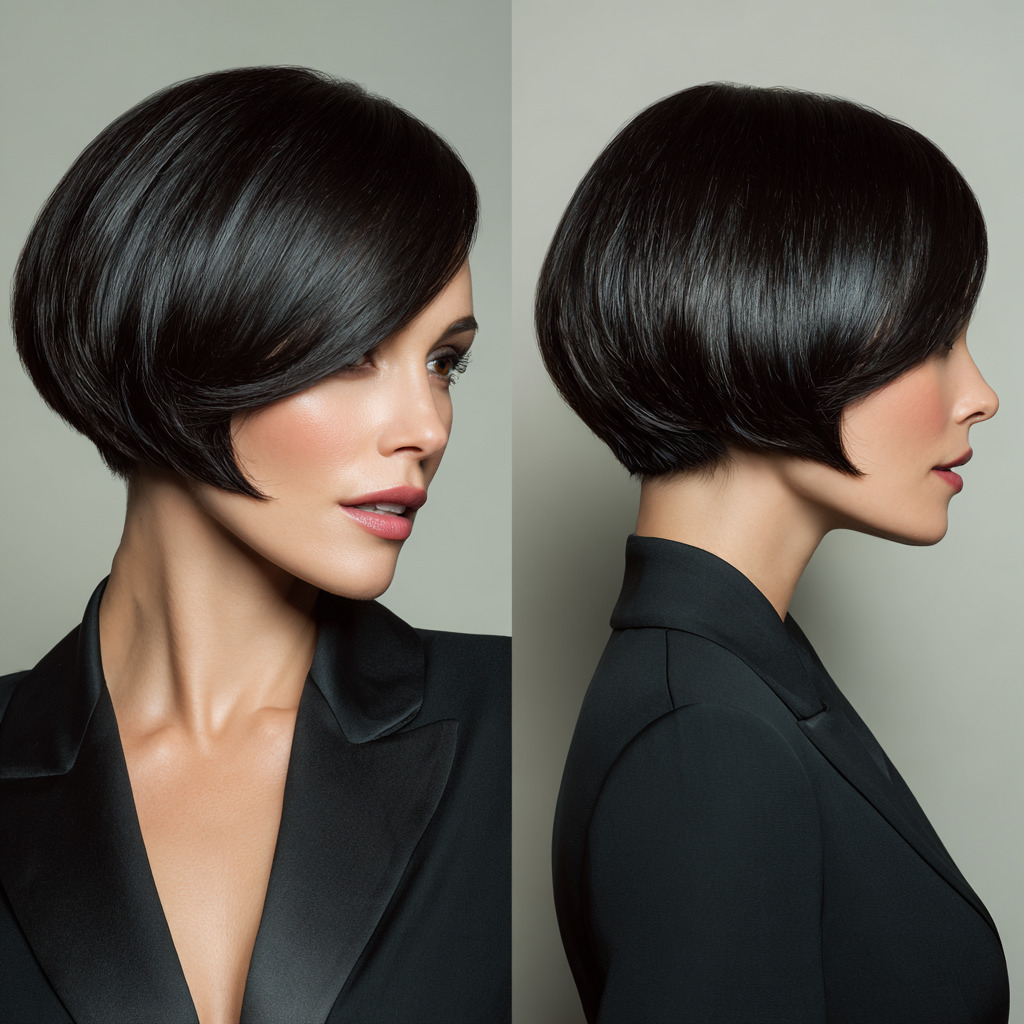 The A-line version is shorter at the back and gradually longer in the front. It sharpens your profile and makes your neck look longer. The clean lines give it a modern, high-fashion feel. It’s an elegant choice that never goes unnoticed.