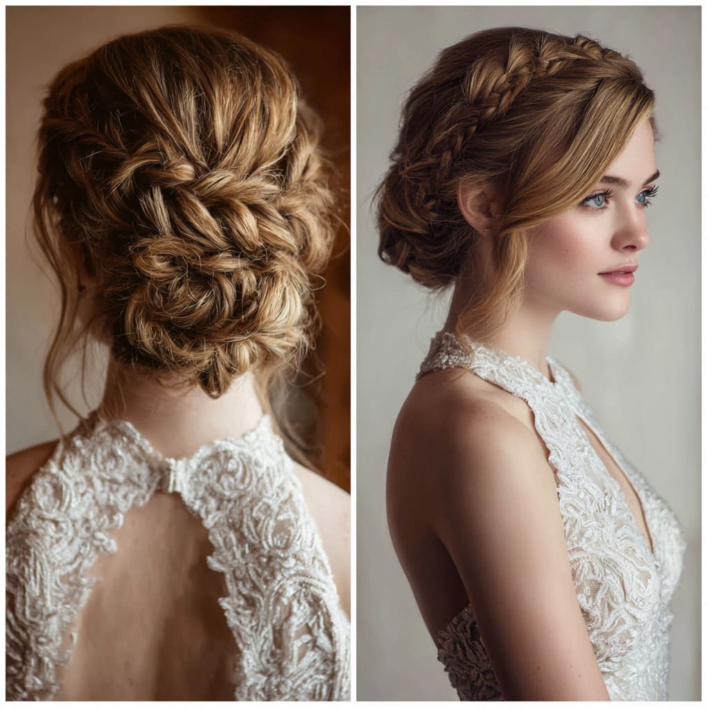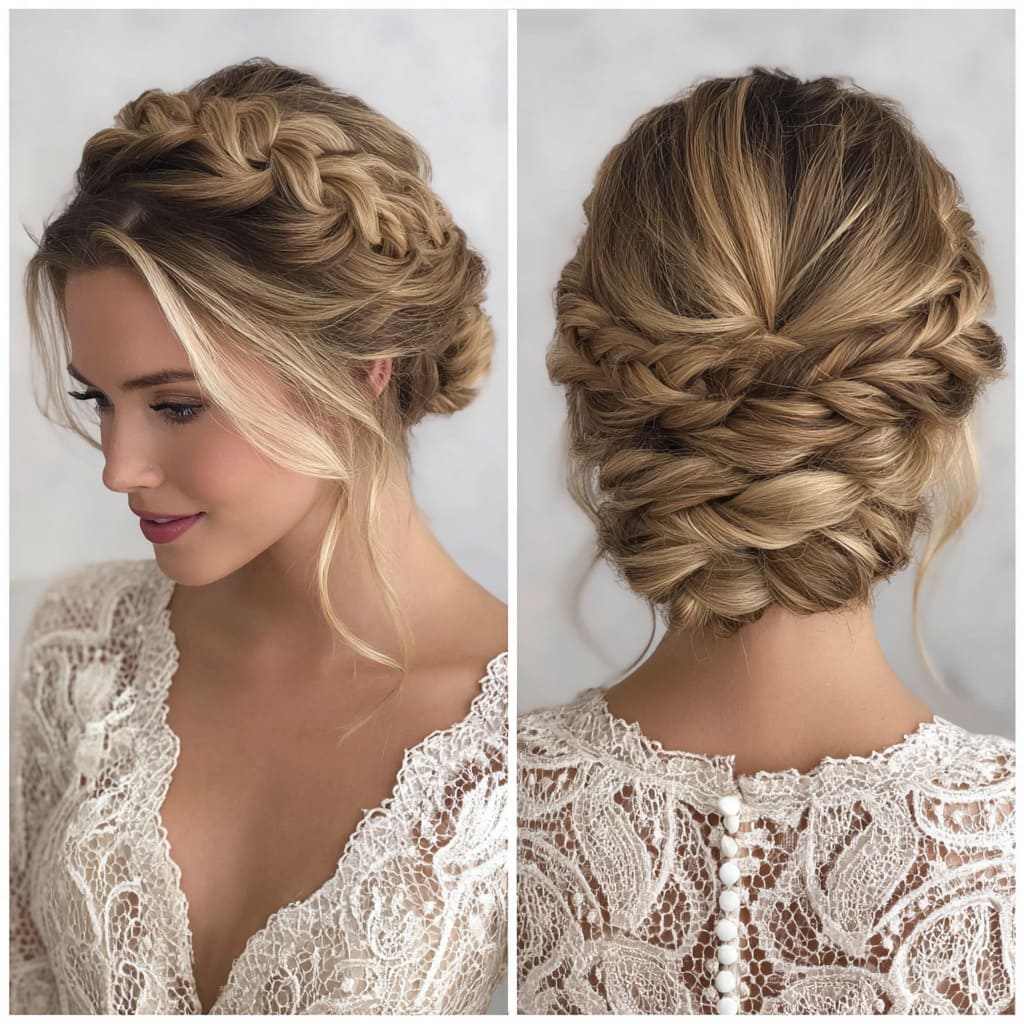 A braided updo is both intricate and practical, keeping your hair secure all night. The braids add texture and make the style look extra special for prom. It’s a great match for elegant gowns with open backs or high necklines. Plus, it photographs like a dream.