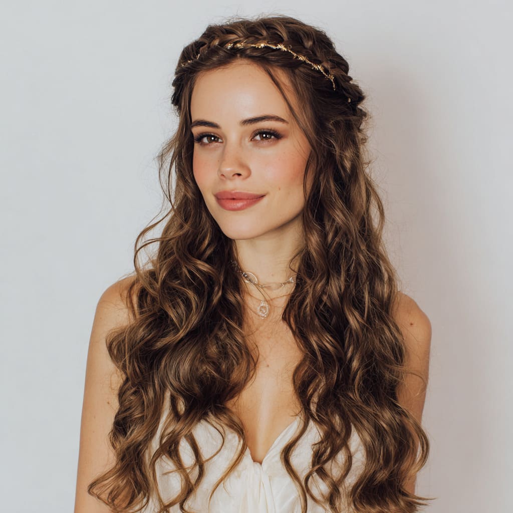 A half-up twisted crown is perfect for those who want their hair down but still styled. The twists add detail while the loose hair flows beautifully. This look works especially well with long curls or waves. It’s dreamy, romantic, and has that princess energy.