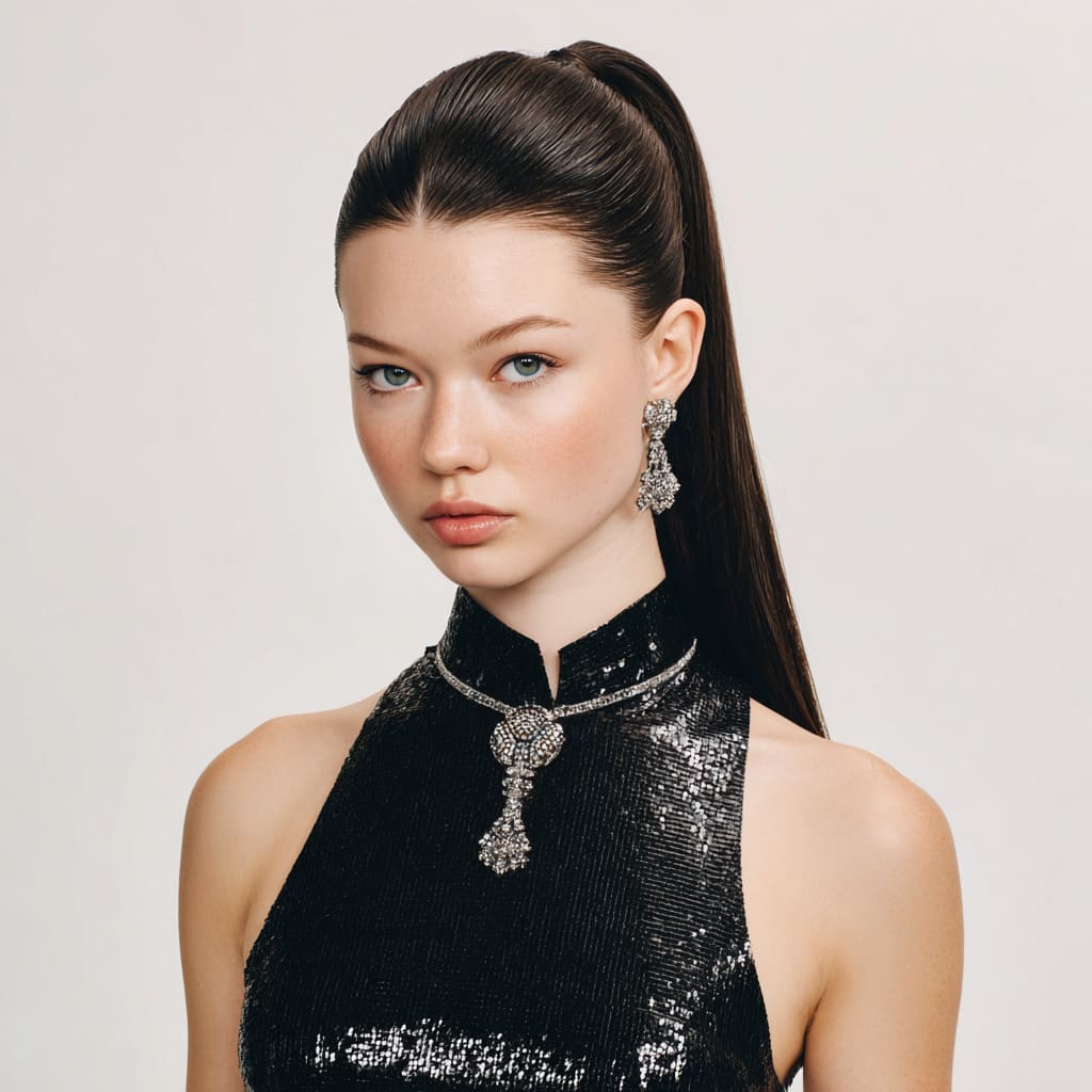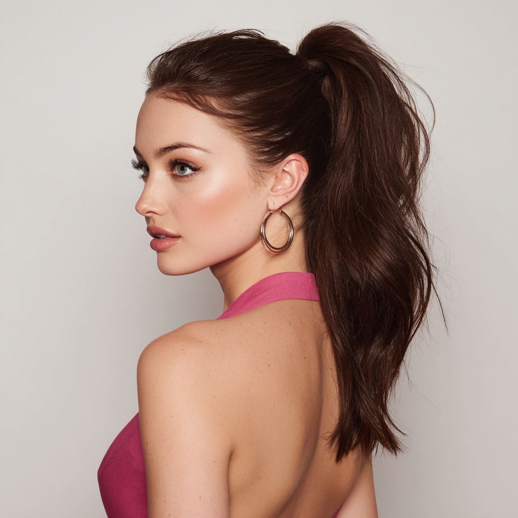 This sleek, glossy ponytail feels chic and fashion-forward. The middle part gives it an edge, and the smooth finish makes it look super polished. It’s bold yet elegant, perfect for modern prom looks. Pair with bold earrings or a statement necklace for extra impact.