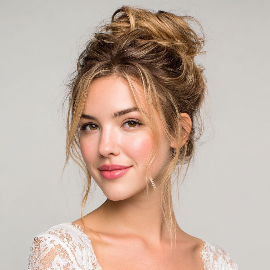 This bun is relaxed yet romantic, perfect for giving off effortless charm. The loose strands around your face soften the look and make it picture-perfect from every angle. It pairs beautifully with flowy dresses or anything with lace. Plus, it’s super comfy for dancing all night long.