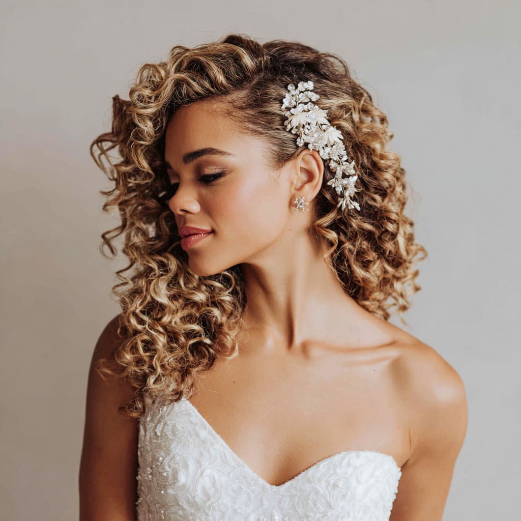 Side-swept curls are glamorous and perfect for showing off one shoulder or strapless gowns. The curls cascade beautifully to one side, giving you a dramatic silhouette. Add a sparkly comb or clip for extra glam. This style is ideal if you want a red-carpet moment.