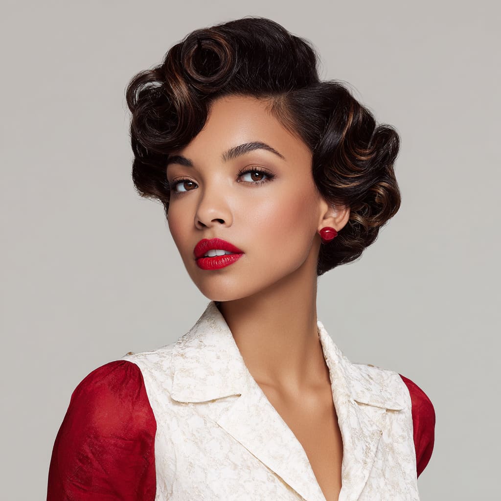 Step back in time with a vintage-inspired roll that oozes old-school glam. The sculpted curls and defined shape are perfect for a dramatic prom look. Pair with a bold red lip for ultimate retro vibes. This hairstyle guarantees you’ll look like a starlet from the golden age.