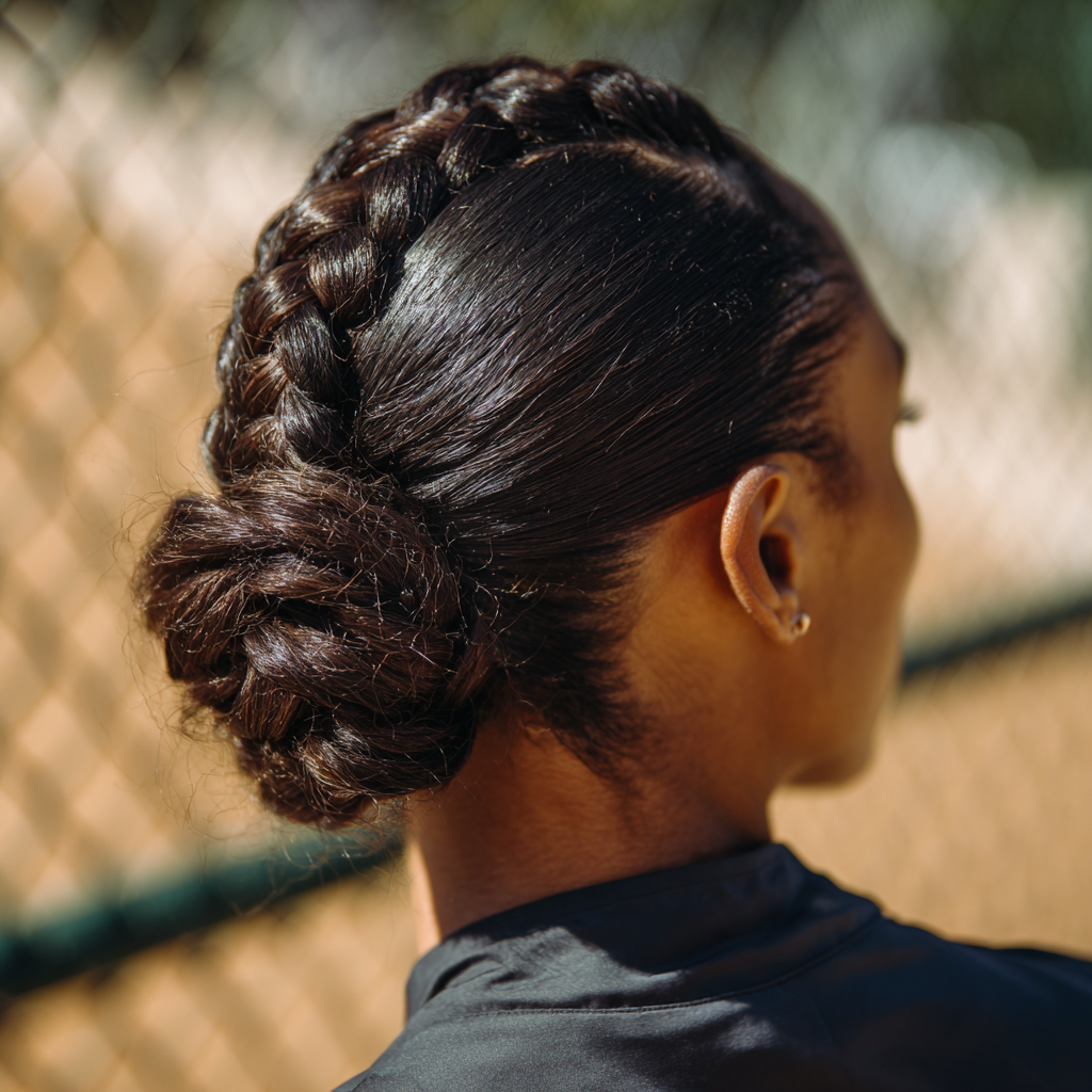 If you want ultimate security, braid your hair into a bun. This style is not only stylish but also ensures no strands get in your way while batting or fielding. It’s sleek, simple, and guaranteed to stay put through all nine innings.