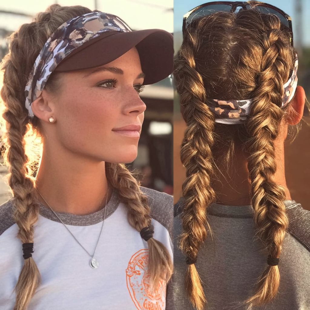 Double Dutch braids are a go-to for athletes because they’re secure, stylish, and super practical. The braids keep every strand in place while you’re running bases or fielding balls. They also look edgy and cute, especially when paired with a visor. It’s a hairstyle that’s just as perfect for the dugout selfie as it is for the big game.