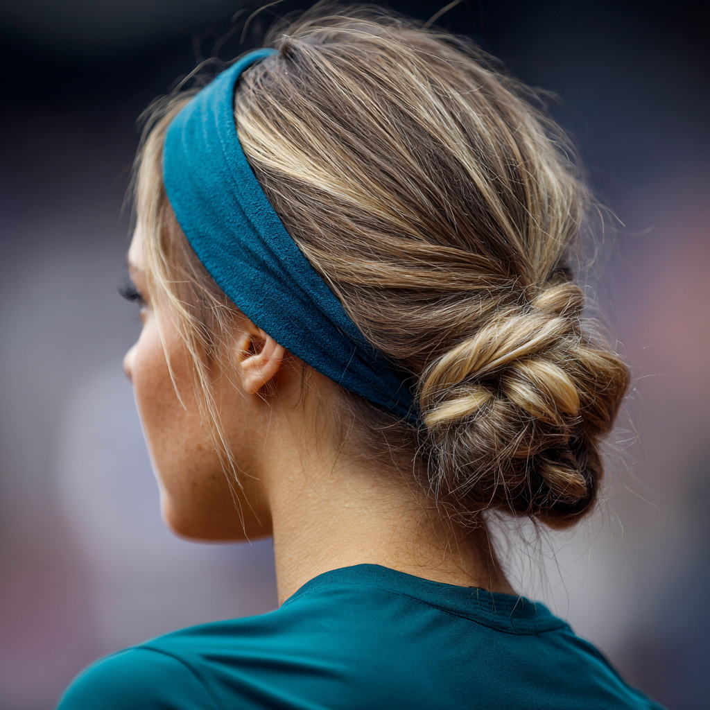 The low bun is perfect for players who like a no-fuss, clean style. Secure it tightly at the nape of your neck, then add a sporty headband to keep sweat and flyaways at bay. This hairstyle is neat, professional, and will stay put even through extra innings. Plus, the headband lets you add a pop of color to your look.