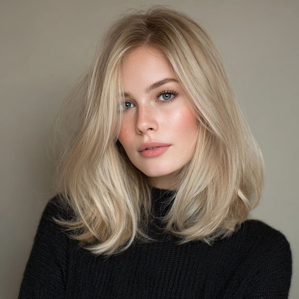 A long bob in soft beige blonde strikes the perfect balance between chic and casual. It flatters every face shape and works with both straight and wavy textures. The neutral tone is versatile, making it perfect for winter layering looks.
