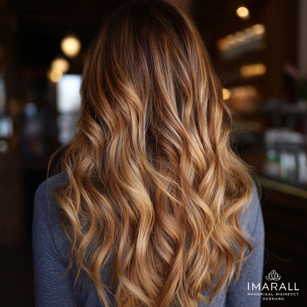 Balayage in caramel blonde warms up your hair while keeping things low-maintenance. The soft blend feels natural but polished, ideal for chilly days. Pair it with loose waves for that effortless “just stepped out of the café” vibe.