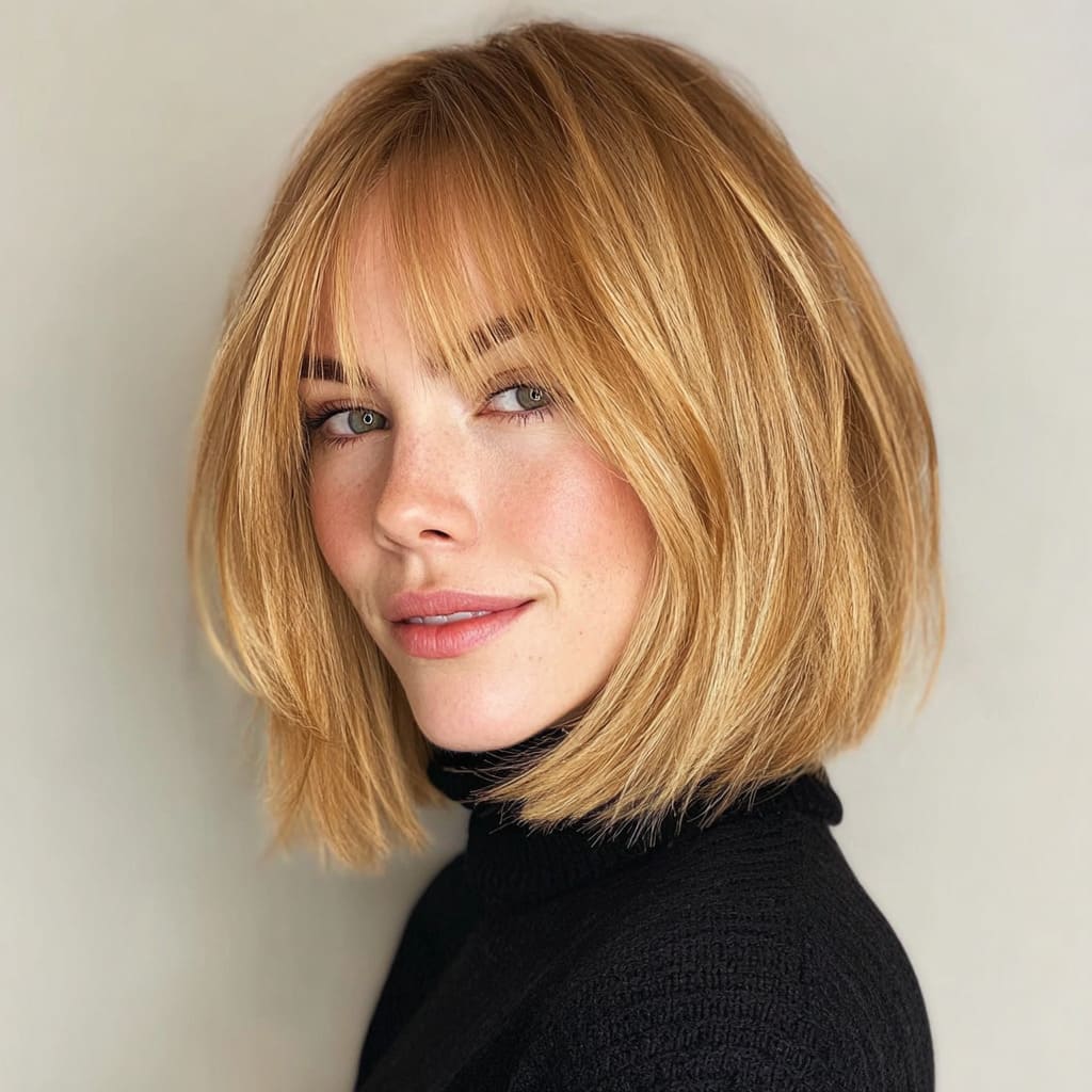 For those who prefer warmth, a golden honey bob is playful yet chic. The shorter cut frames your face beautifully, while the rich blonde keeps things cozy. It’s low-maintenance but stylish enough for all your winter outings.
