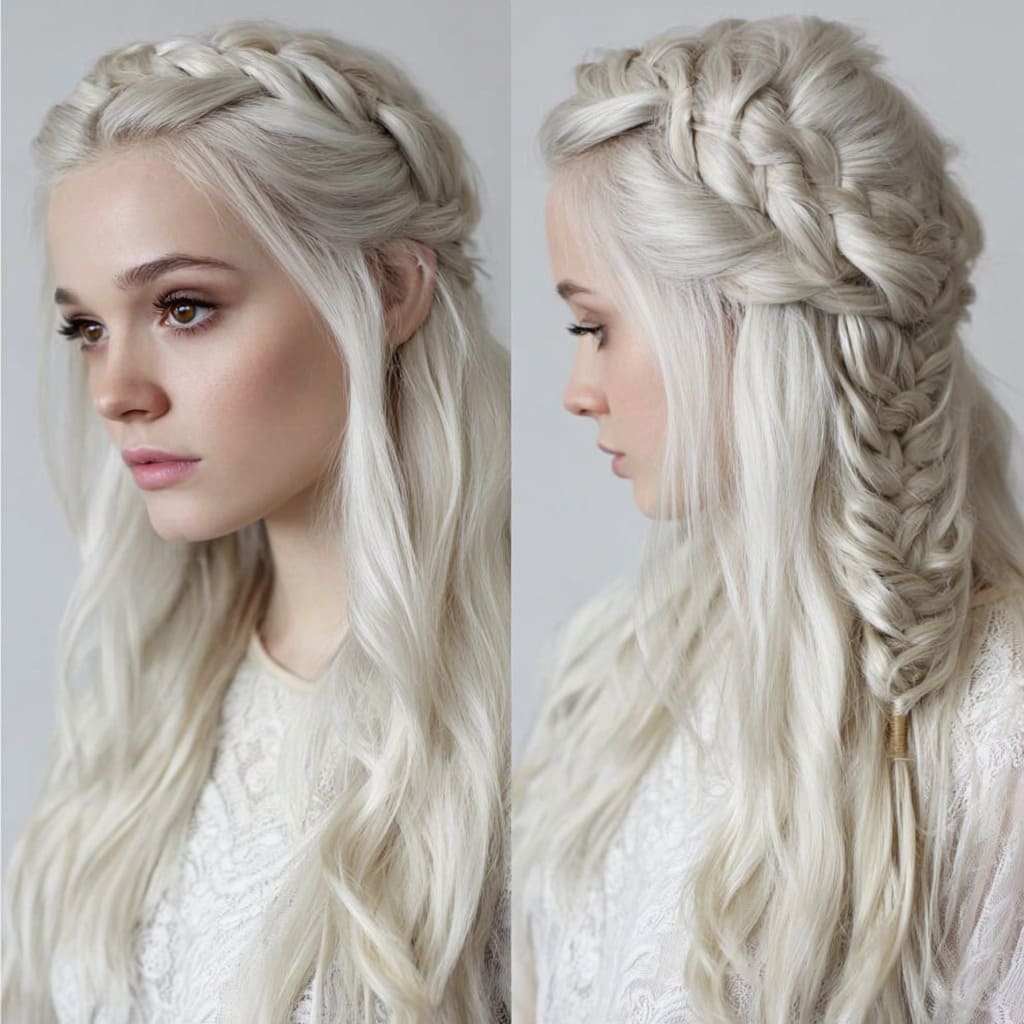 Braids in platinum blonde hair look striking and intricate. Whether it’s a crown braid or simple Dutch braids, the color makes them stand out. It’s playful yet regal, perfect for winter.